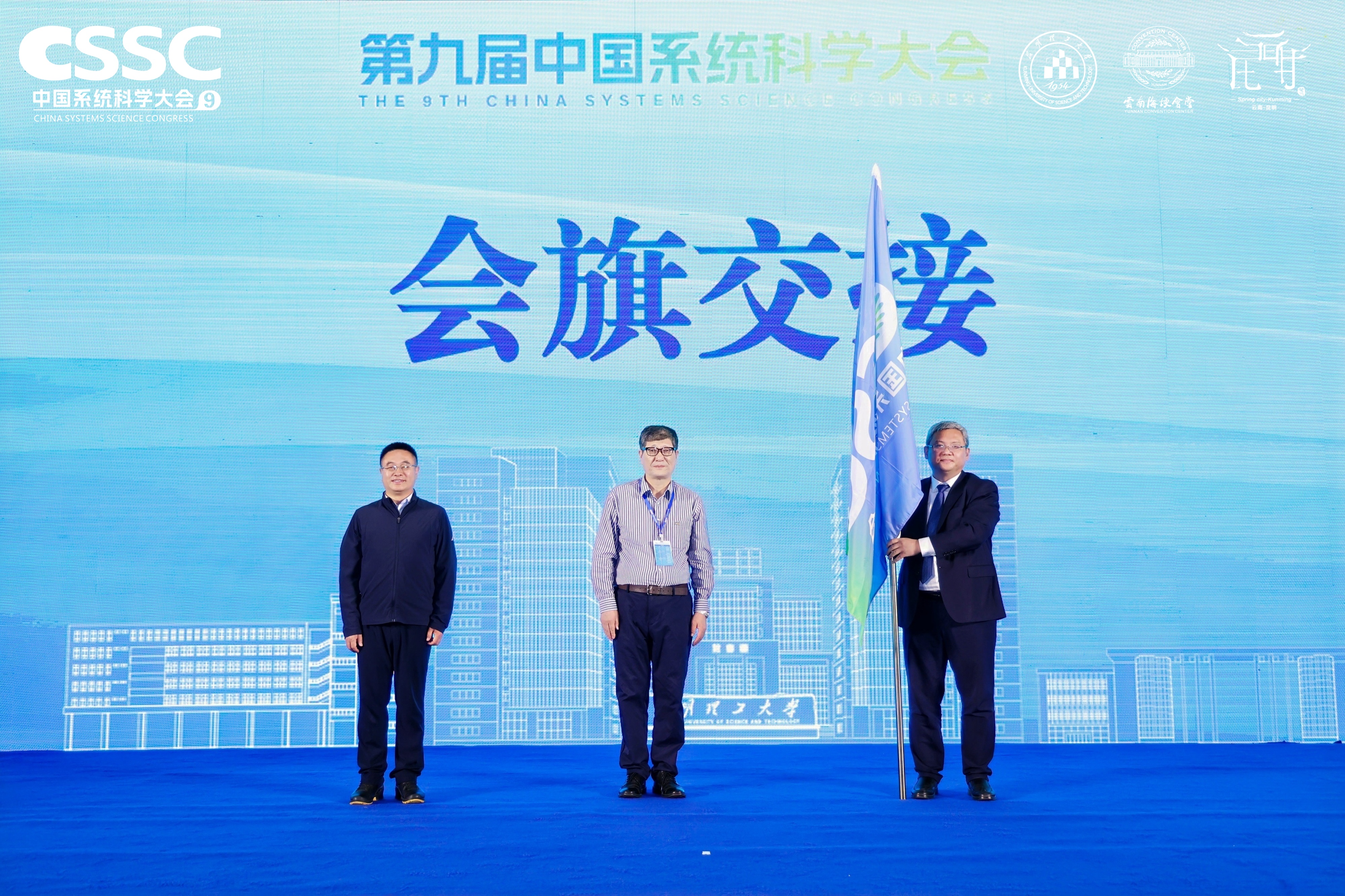 5月18日晚,大会闭幕式上,高岩作为颁奖嘉宾为获奖论文作者颁奖,并代表中国系统科学大会主办单位上海系统科学研究院,从第九届中国系统科学大会承办单位昆明理工大学手中收回会旗,交予第十届中国系统科学大会承办单位武汉科技大学。