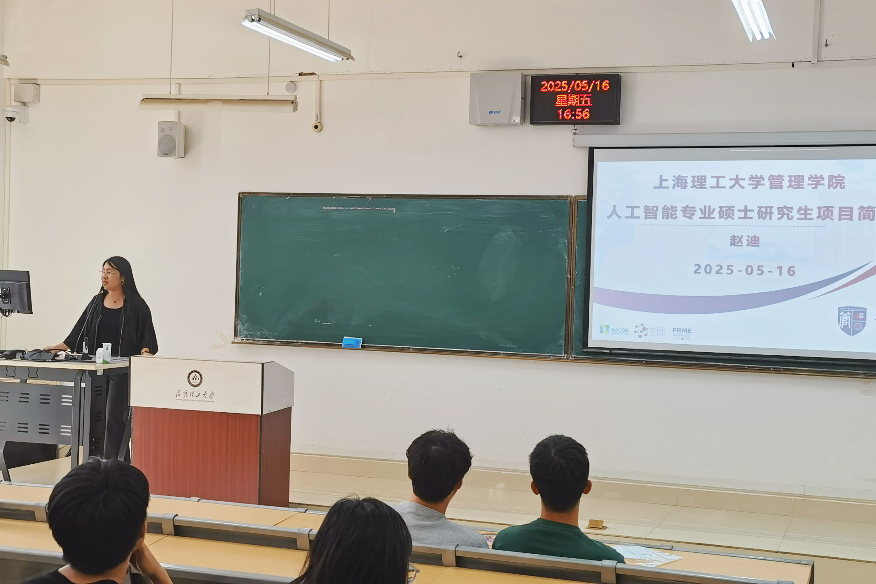 5月16日下午,上海理工大学管理学院系统科学系主任顾长贵、支部书记刘媛华、教师赵迪赴昆明理工大学进行了研究生招生宣传,本次宣传吸引到了150余名本科生参会。