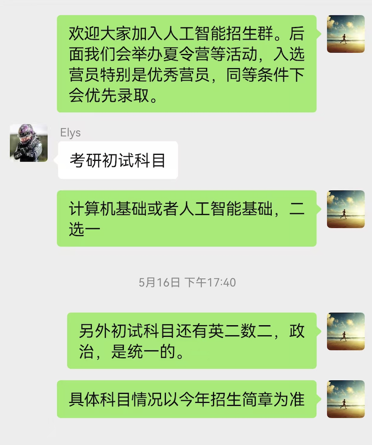 为方便考生获取最新招生信息,管理学院建立了AI专硕招生宣讲微信群。招生小组通过微信群及时发布招生政策、报名流程及备考指导等内容,并安排专人在线解答学生关于报考资格、考试科目、培养方向等问题,成为考生与学院沟通的重要桥梁。