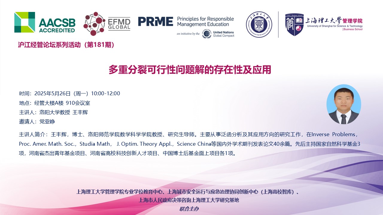 沪江经管论坛系列活动(第181期):多重分裂可行性问题解的存在性及应用