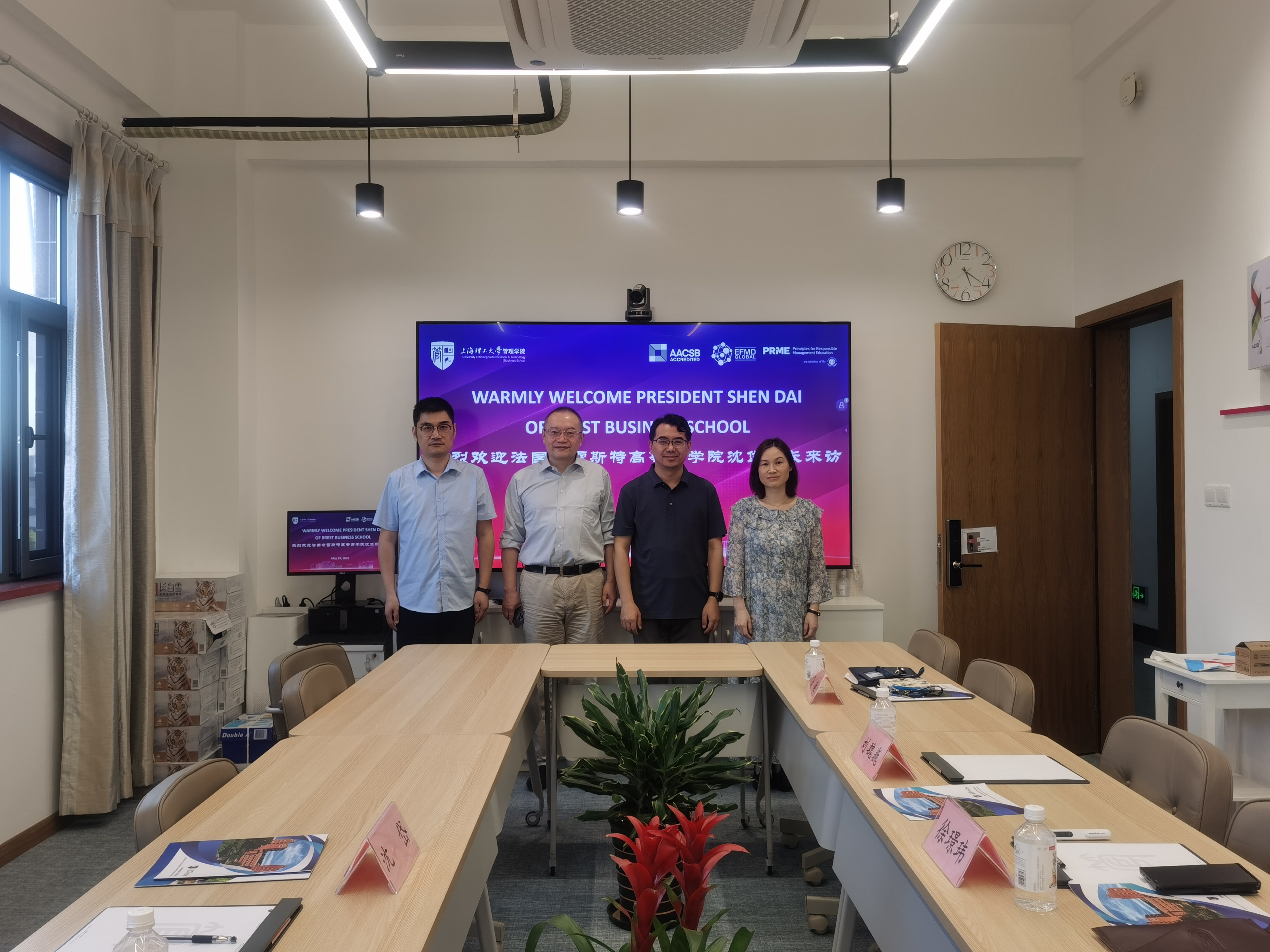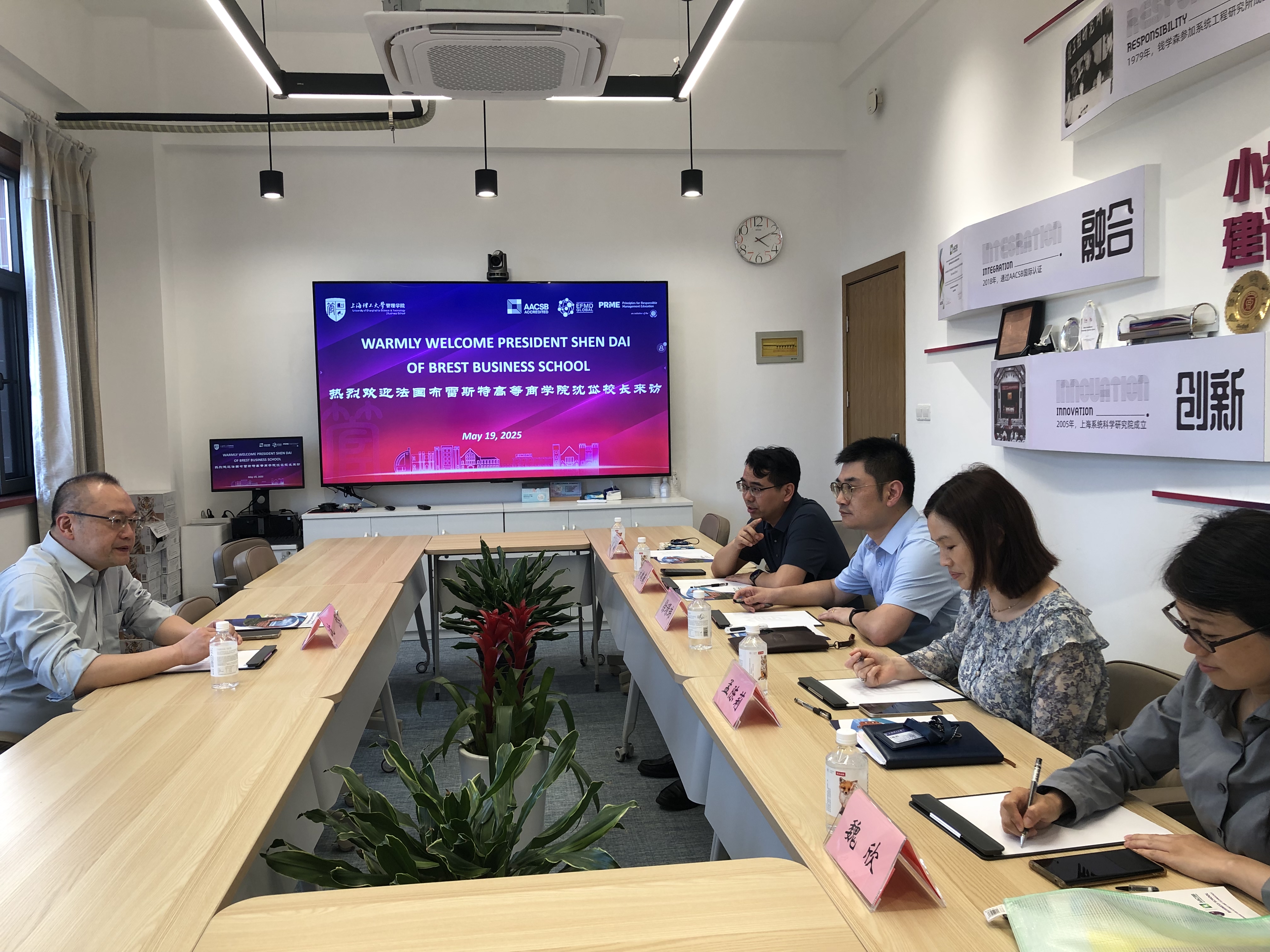 5月19日下午,法国布雷斯特高等商学院校长沈岱来访我院,就国际教育交流与合作事宜进行深入洽谈。学校国际交流处副处长徐璟玮,管理学院副院长刘魏巍,专业学位中心综合办公室主任孟陈莉,以及国际化办公室成员共同参加了会谈。会议由刘魏巍主持。
