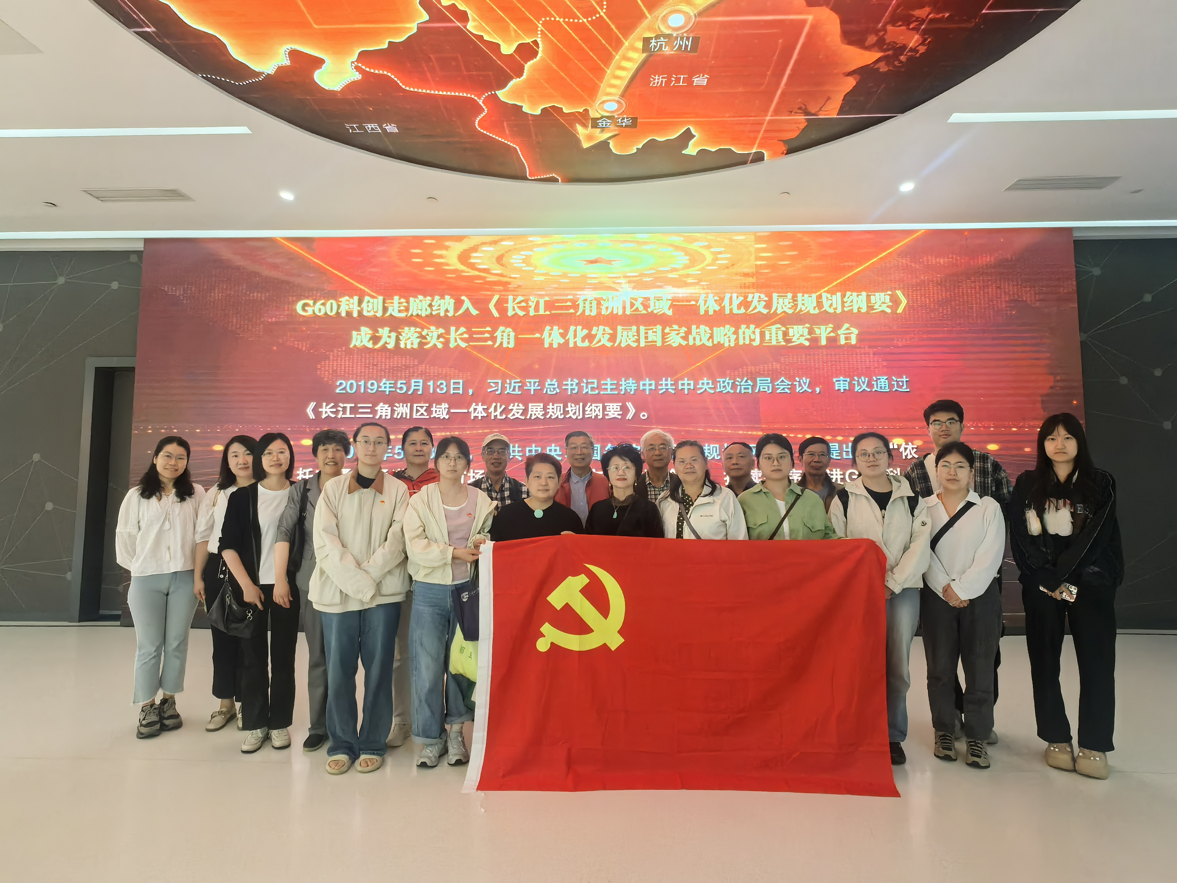 在长三角G60科创走廊规划展示馆,党员同志们深入了解了长三角G60科创走廊的规划布局与发展成果。展示馆内详细呈现了走廊沿线城市在科技创新、产业协同、人才汇聚等多方面的丰硕成果,彰显了区域科技联动的巨大潜力与强劲动力。同志们深刻认识到 G60科创走廊作为长三角一体化发展的重要引擎,在推动区域科技创新、促进产业升级转型中的关键作用,也感受到国家在科技战略布局上的高瞻远瞩,这为进一步明确科研工作与区域发展需求的结合点提供了宏观视角,并由此深入思考如何发挥好高校师生在“科研创新—人才培养”环节的作用,为上海建设国际科技创新中心贡献智慧与力量。