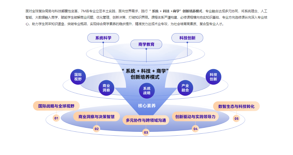 凭借上述全方位、系统性的布局与举措,学院致力于培养出既具备扎实商科基础,又掌握系统科学思维和科技创新能力,同时拥有国际视野、商业洞察、多元协作、创新实践和科技转化等核心素养的高素质商科专业人才,满足社会和经济发展对商科人才多元化、复合型的迫切需求,为商业领域的蓬勃发展注入源源不断的新生力量。