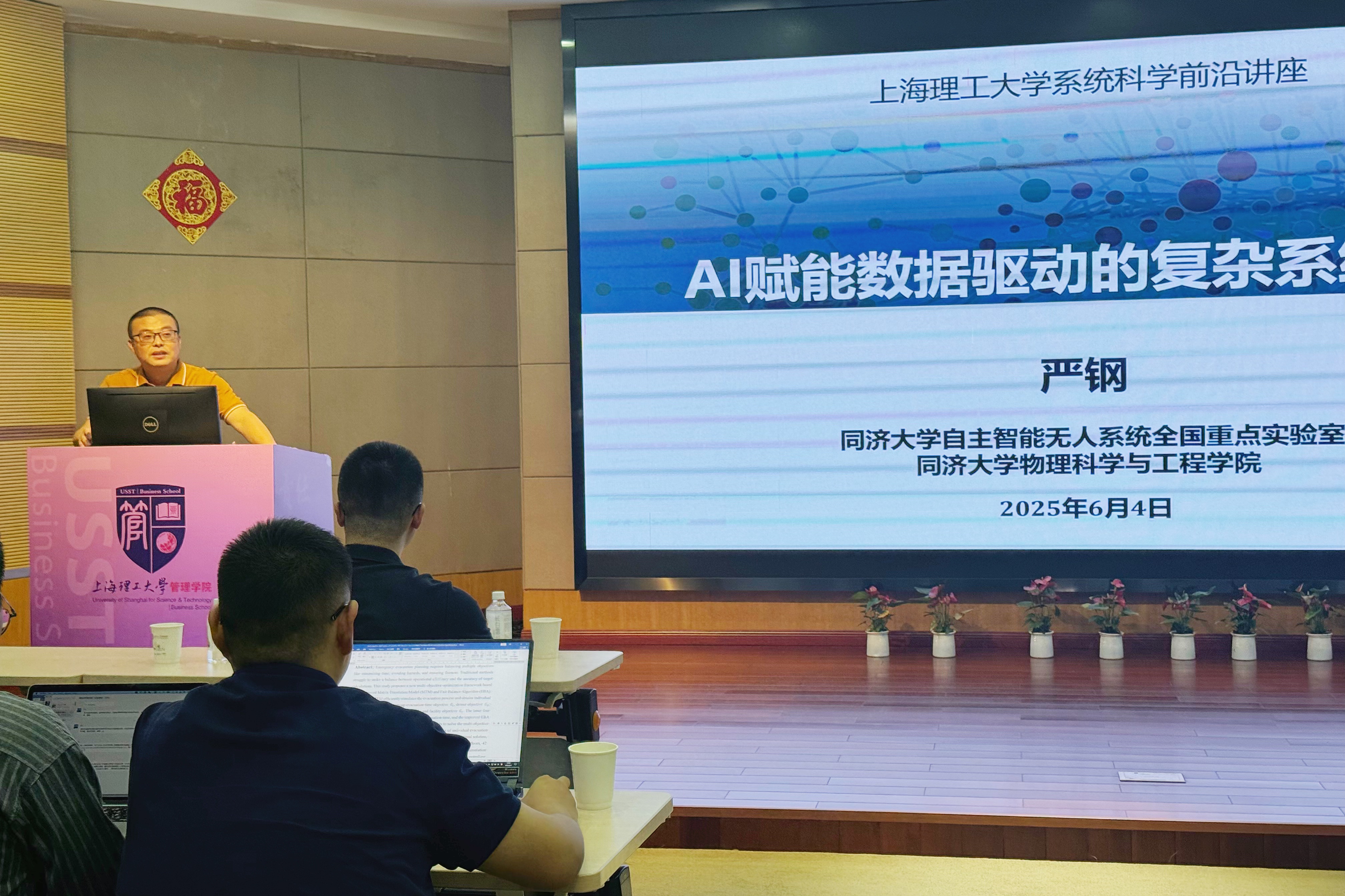 6月4日,管理学院系统科学系举办系统科学前沿专题讲座,特邀同济大学物理科学与工程学院、上海自主智能无人系统科学中心长聘教授、博士生导师严钢教授主讲“AI赋能数据驱动的复杂系统研究”。讲座由系统科学系主任顾长贵教授主持,吸引了管理学院约百名师生参与。