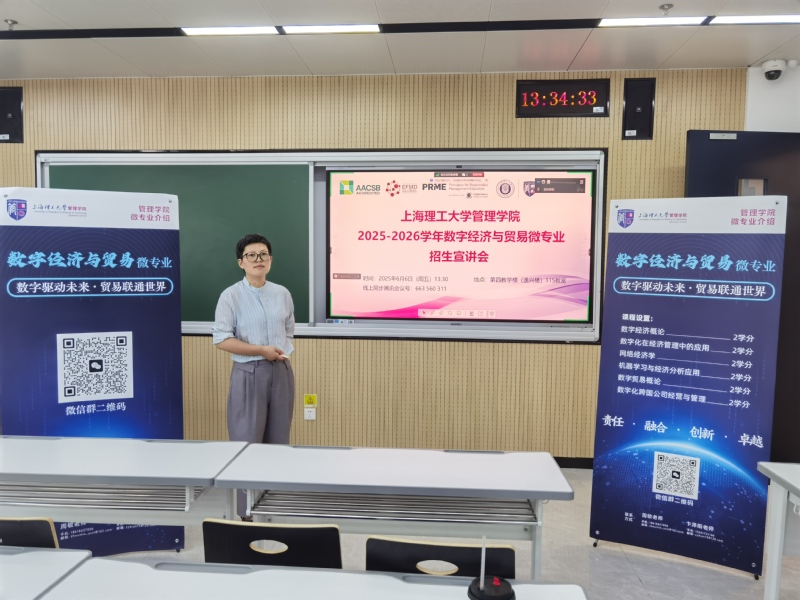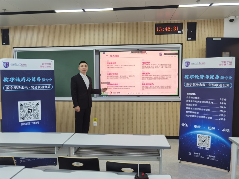 6月6日下午,金融与国际经贸系在第四教学楼115教室举行了数字经济与贸易微专业招生宣讲会,并同步在腾讯会议平台直播。此次宣讲会旨在向同学们介绍该微专业的培养目标、课程设置及就业前景,吸引更多对数字经济与贸易领域感兴趣的学生加入。