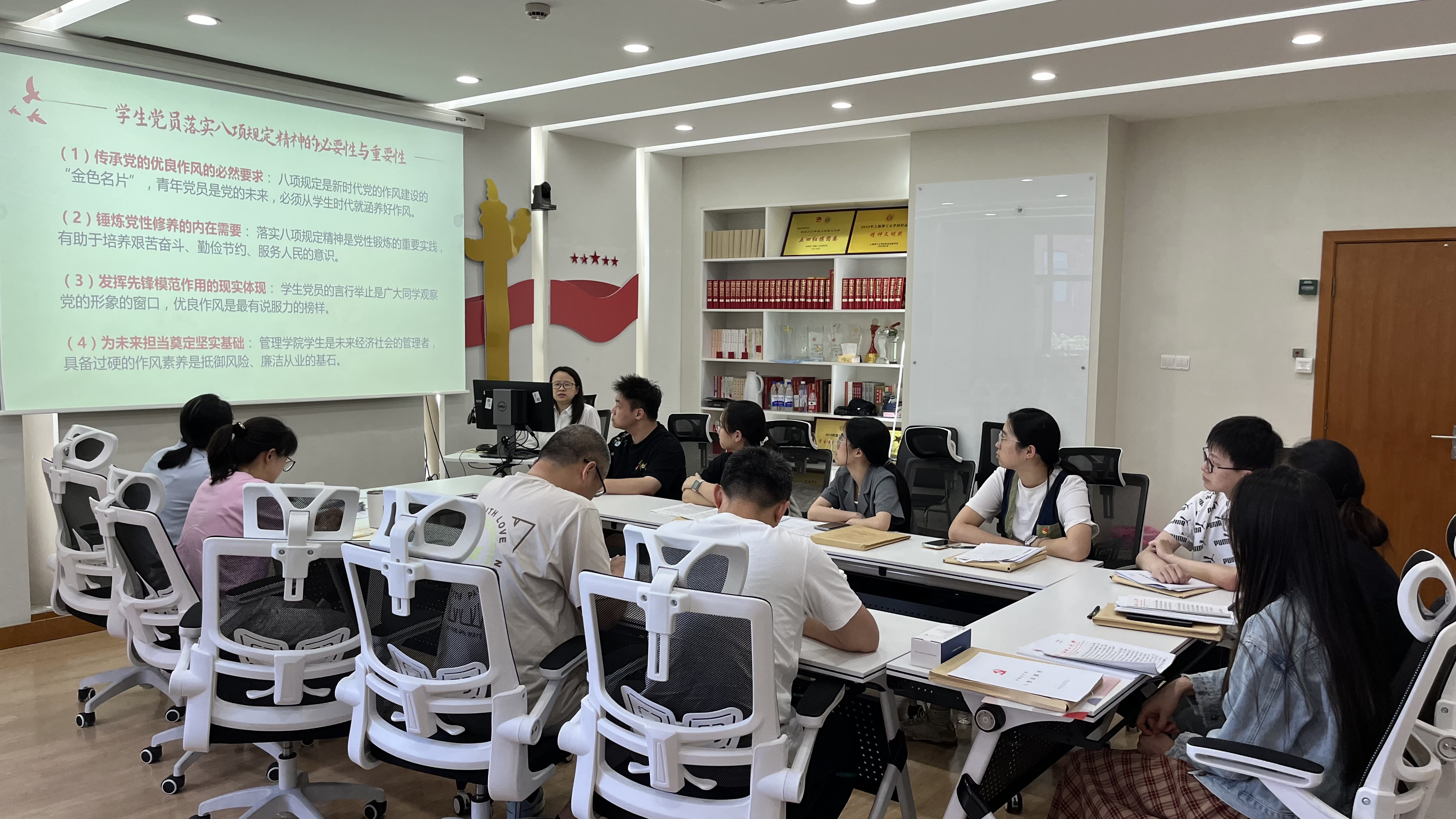 严瑾的党课立足新时代全面从严治党要求,紧密联系高校学生党员思想实际与成长需求。她以深厚的理论功底和鲜活的现实案例,深入剖析了中央八项规定精神的时代背景、核心要义与深远影响,深刻阐述了学生党员落实八项规定精神的必要性与重要性。严瑾强调,要将八项规定的核心精神具体化为学生党员在校园内可感知、可践行的行为准则。她勉励全体学生党员,要将学习成果转化为日常学习、工作、生活的自觉遵循,在学风建设、服务同学中率先垂范,以优良作风展现新时代青年党员的责任担当。