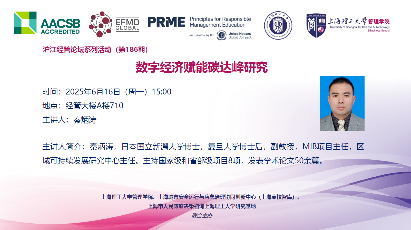 沪江经管论坛系列活动(第186期):数字经济赋能碳达峰研究