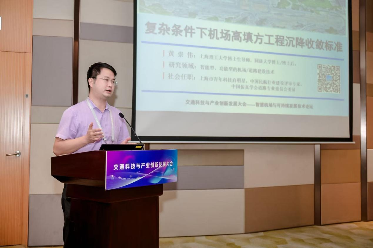 黄崇伟参加智慧机场与可持续发展技术论坛,并做题为:复杂条件下高填方机场沉降收敛施工验收标准的报告。