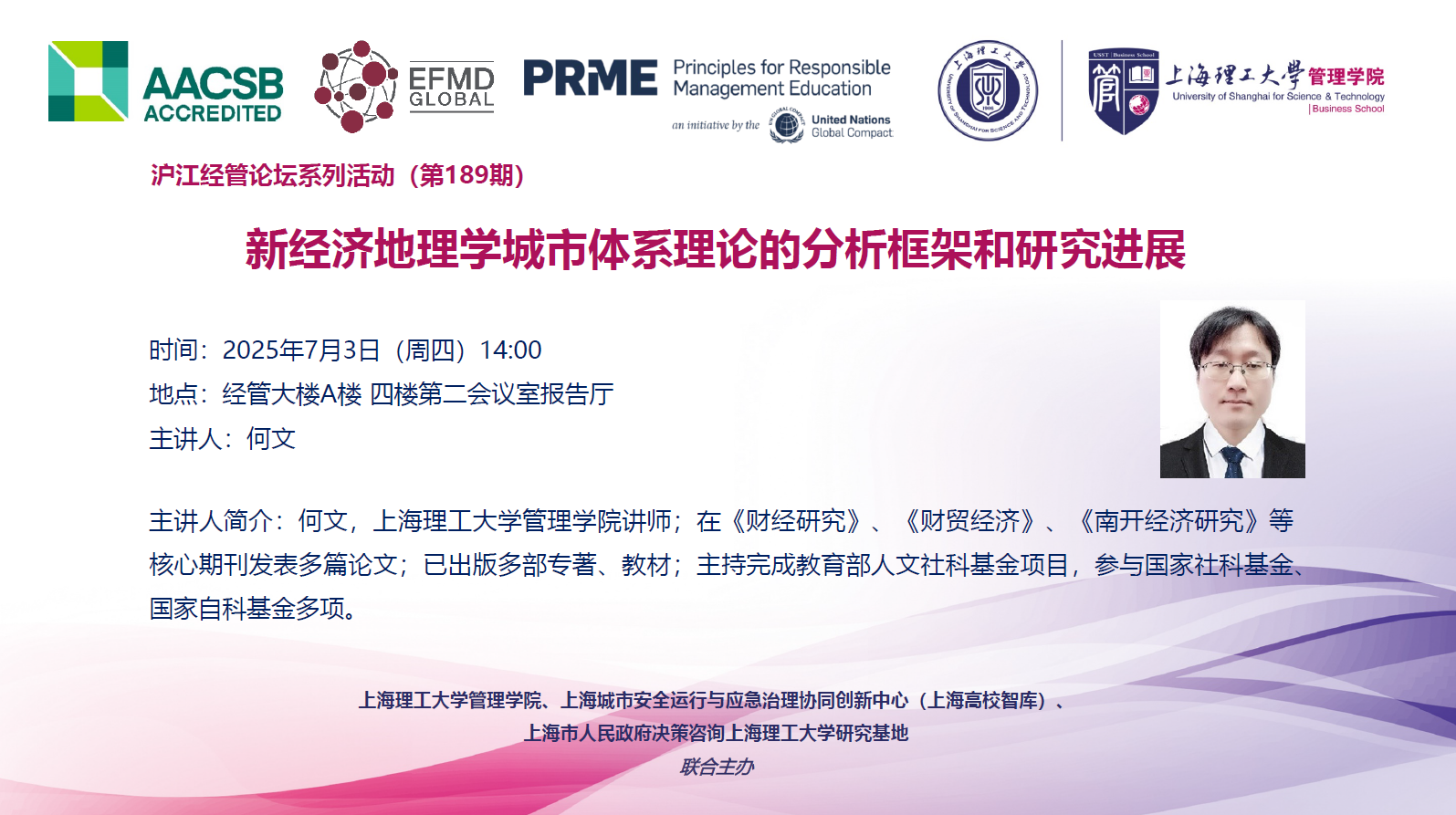 沪江经管论坛系列活动(第189期):新经济地理学城市体系理论的分析框架和研究进展