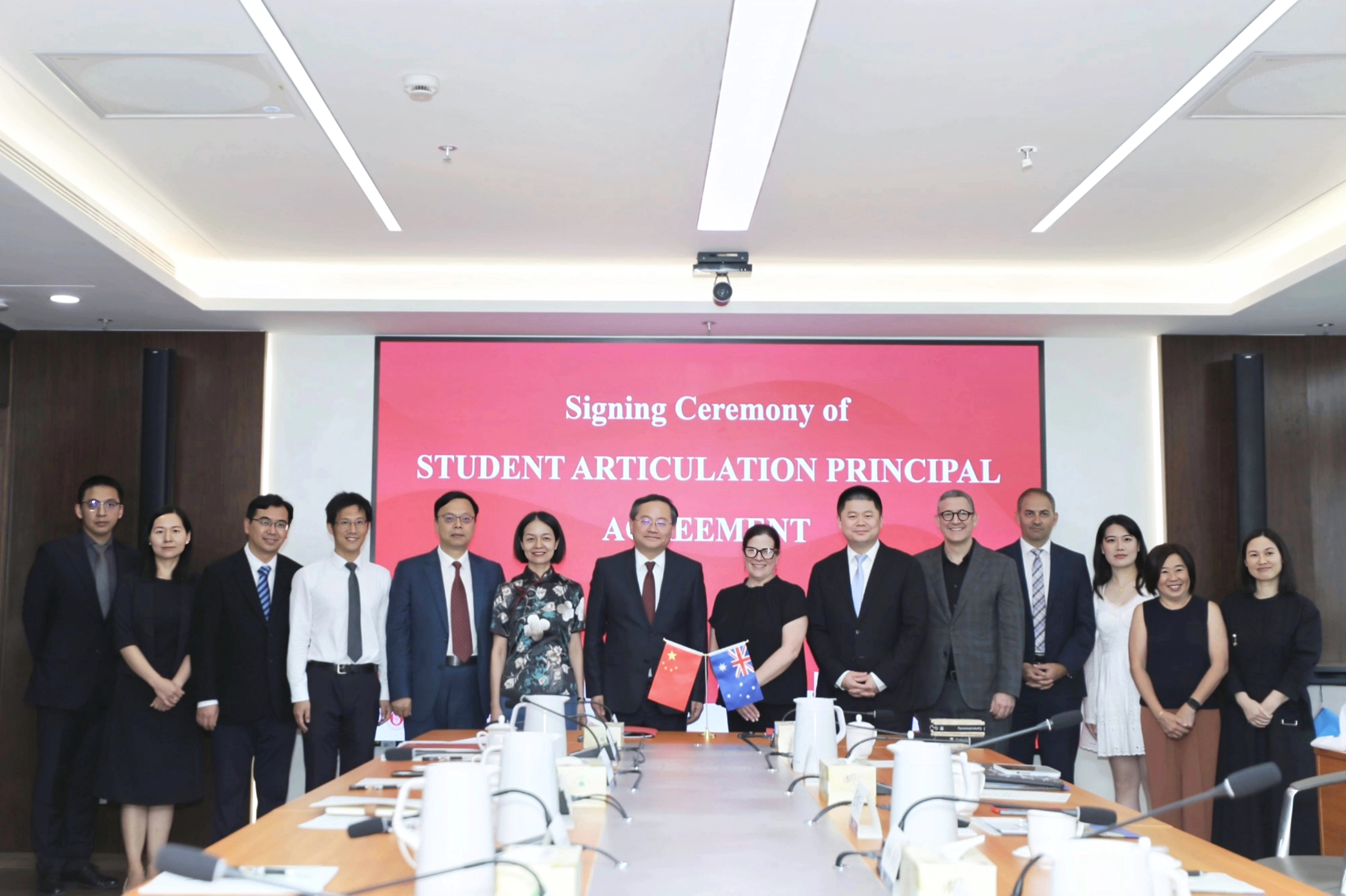 随后,在中澳双方代表的共同见证下,朱新远与哈琳·海恩签署了两校硕士双学位联合培养协议。签署仪式前,与会人员围绕未来合作领域、学生联合培养、联合科研等议题展开了深入探讨与交流。
