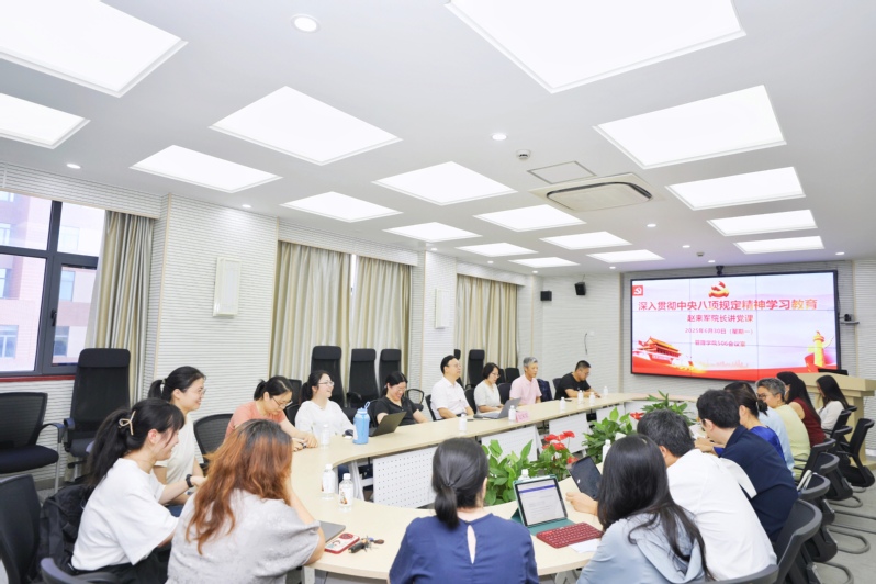 朱小栋在总结时表示,此次联建学习内容充实,不仅深化了对中央八项规定精神的理解,也切实增强了两个支部之间的组织联动与作风共建。赵来军的党课内容深刻、启示深远,一方面帮助党员同志进一步认识到中央八项规定精神不仅是改进作风的重要遵循,更是加强党性修养、守住纪律底线的重要抓手;另一方面,也为学院实现高质量发展、推动学校实现新一轮跨越明确了方向,指明了学院教师肩负的职责和使命。