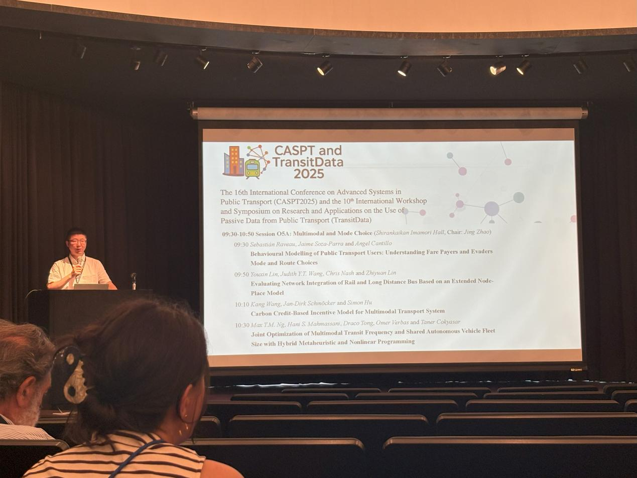 第16届公共交通先进系统国际会议(CASPT2025)和第10届公共交通数据研究与应用国际研讨会(TRANSIT DATA)于2025年6月30日至7月4日在日本京都联合举行。上理工管理学院副院长赵靖,机械工程学院教师孙跃东,管理学院交通系统工程系教师孙文喆、李文翔,系统科学系高岩,公共管理系刘心雨,以及交通系统工程系三名博士和硕士研究生参加了会议。赵靖和孙文喆分别担任本次国际会议区域组委会和日本本地组委会委员。