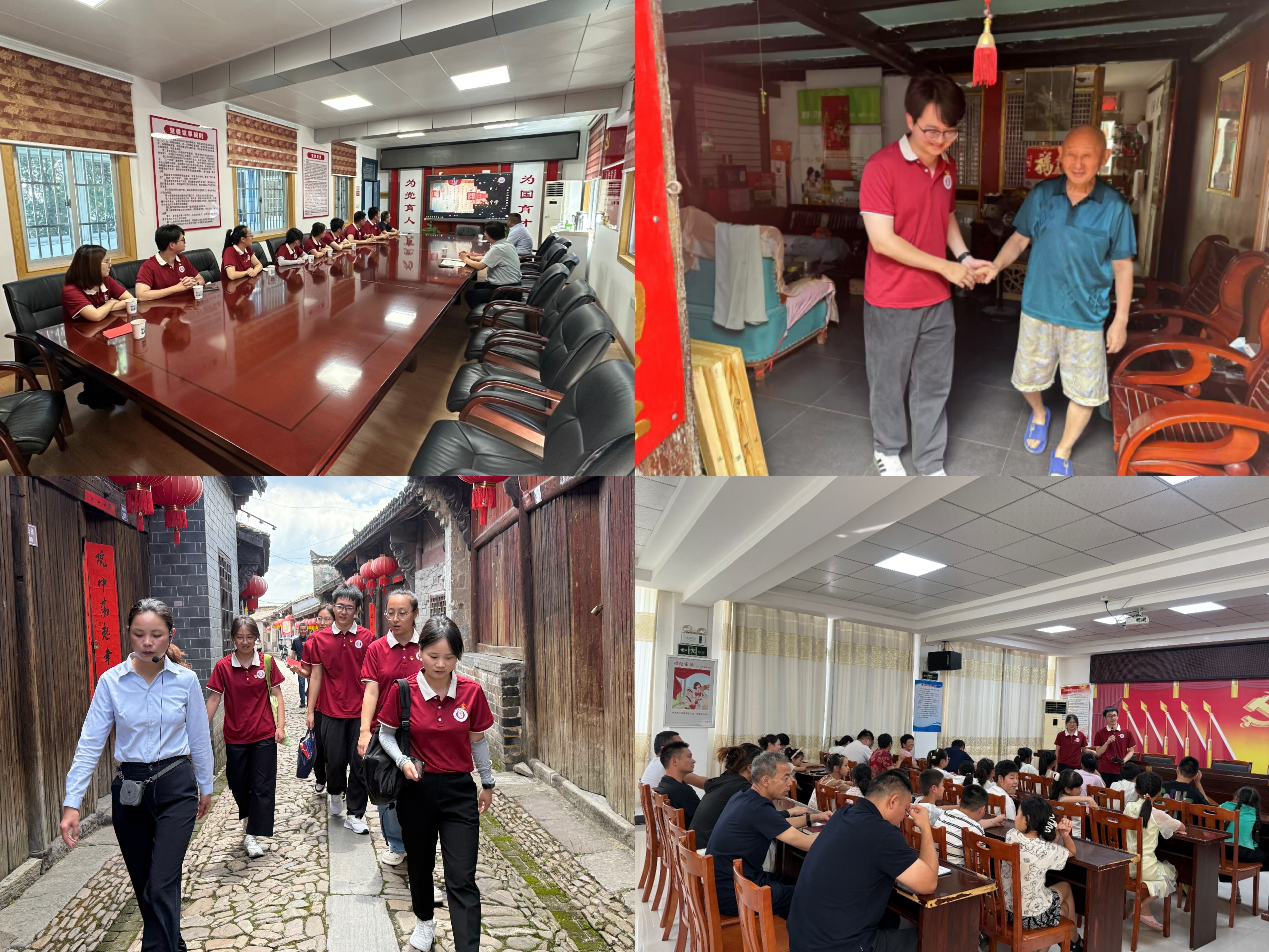 从诞生于抗日烽火、到如今依然书声琅琅的毛坦厂中学,到长达1321米、承载历史沧桑的明清老街,从原住民到外来的陪读家庭,这里处处流淌着传统与现代交融的生命力。在八角塘村党群服务中心,研学团成员发挥专业特长,带来一场别开生面的“新型党课”。他们创新运用VR虚拟技术,带领当地儿童和父老乡亲沉浸式“穿越”到淞沪会战的烽火现场,身临其境地感悟历史。宣讲不仅深入浅出,更注重互动答疑,成功将红色教育、前沿科技与专业知识深度融合,现场反响极其热烈。