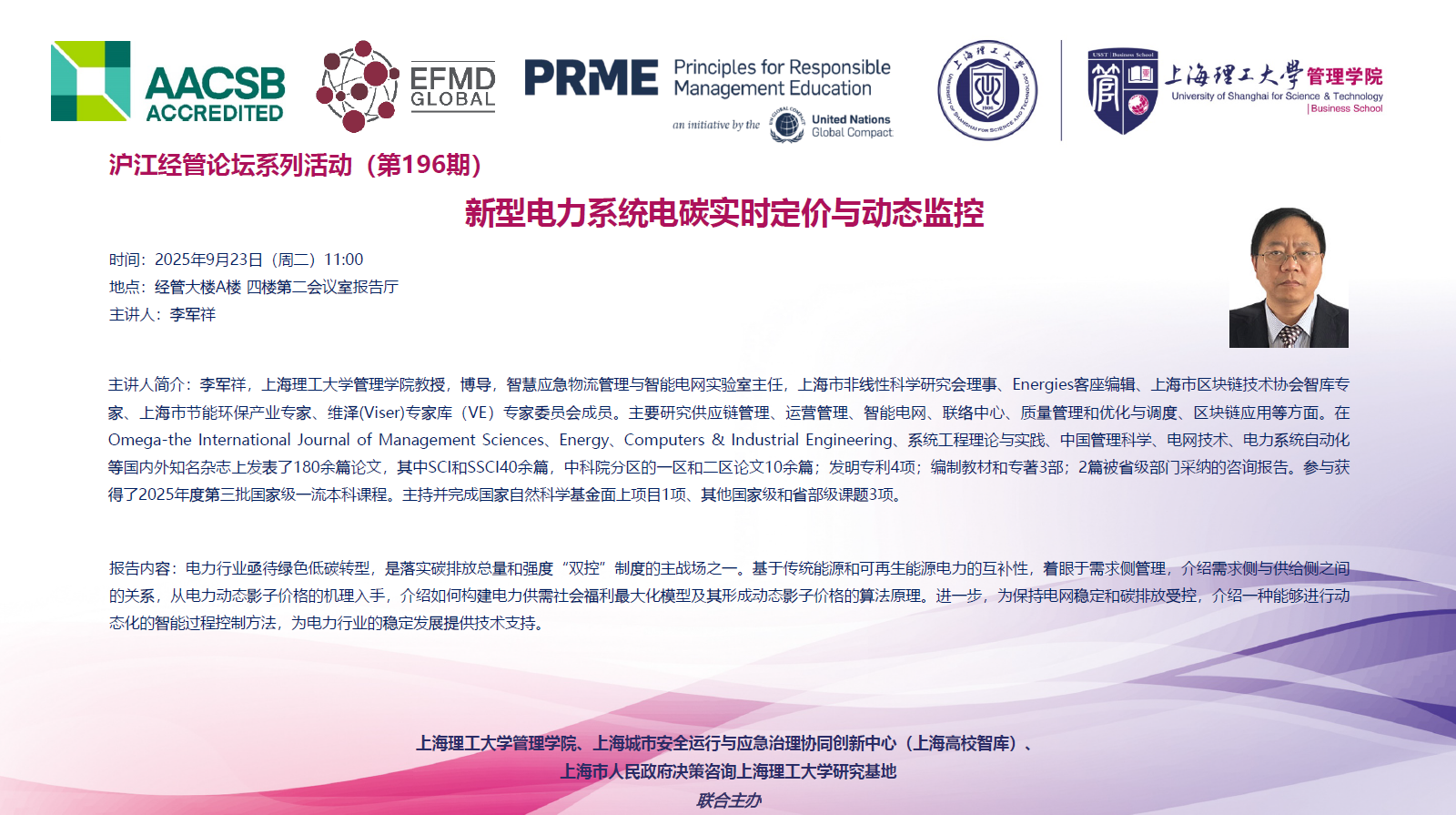 沪江经管论坛系列活动(第196期):新型电力系统电碳实时定价与动态监控