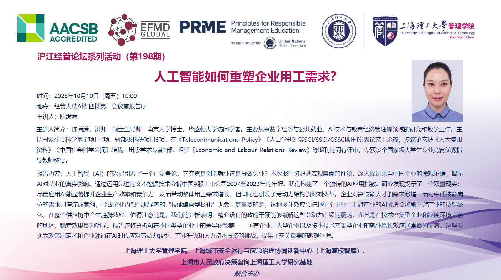 沪江经管论坛系列活动(第198期):人工智能如何重塑企业用工需求?