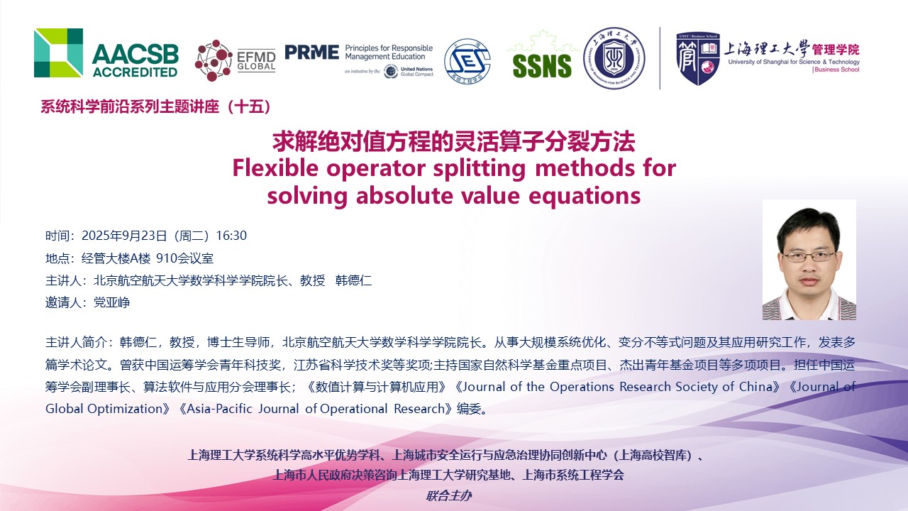 系统科学前沿系列主题讲座(十五):求解绝对值方程的灵活算子分裂方法
