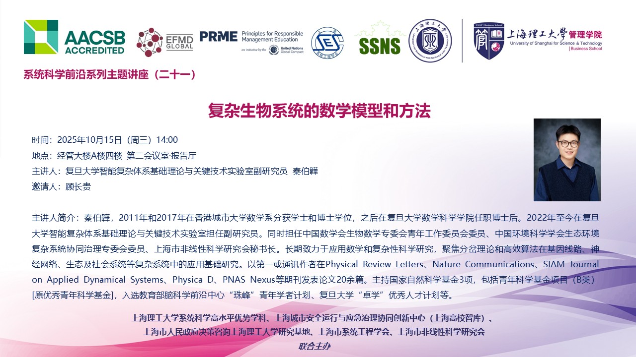 系统科学前沿系列主题讲座(二十一):复杂生物系统的数学模型和方法