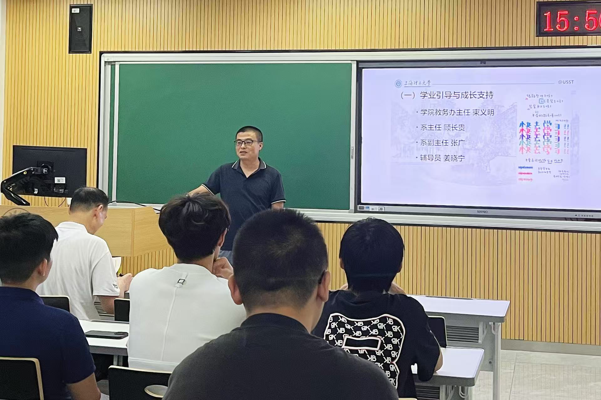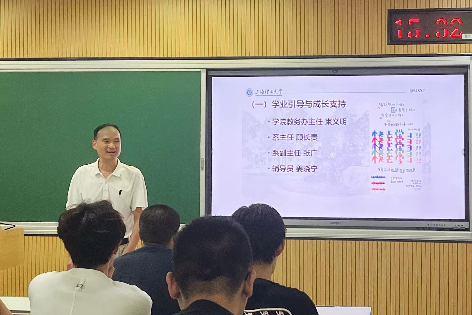 顾长贵在分享中着重强调,课堂出勤率是保障学业的基础,学生需端正学习态度、认真完成学业任务,建议学生多参加各类竞赛、与导师合作撰写论文等来提升个人综合能力参与科研实践,积累学术经验。他以大四学生保研北京师范大学为例,鼓励同学们增强信心、积极上进。