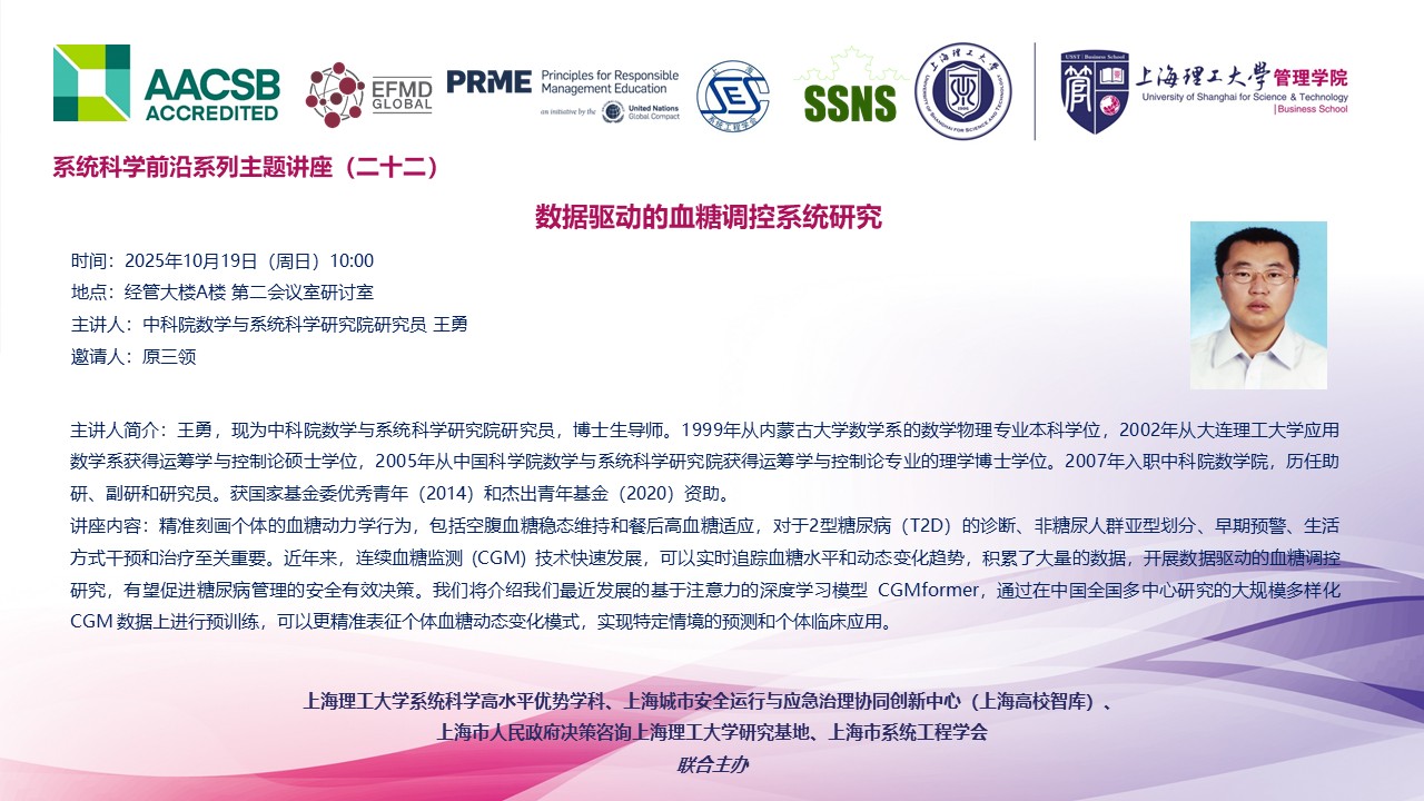 系统科学前沿系列主题讲座(二十二):数据驱动的血糖调控系统研究