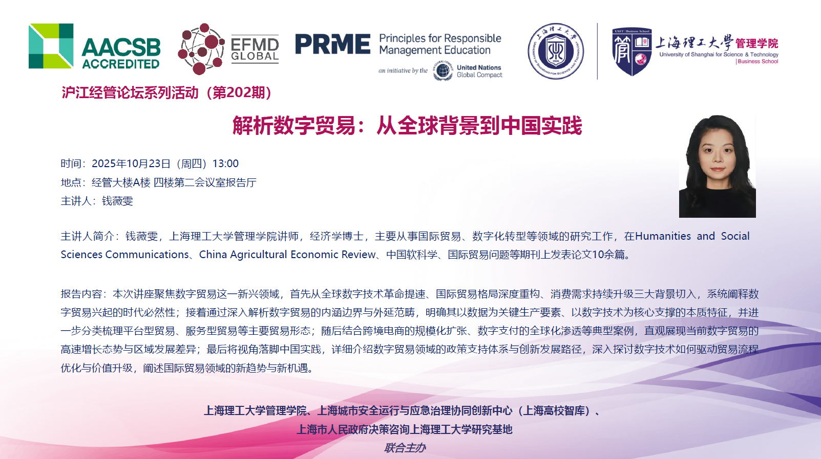 沪江经管论坛系列活动(第202期):解析数字贸易:从全球背景到中国实践