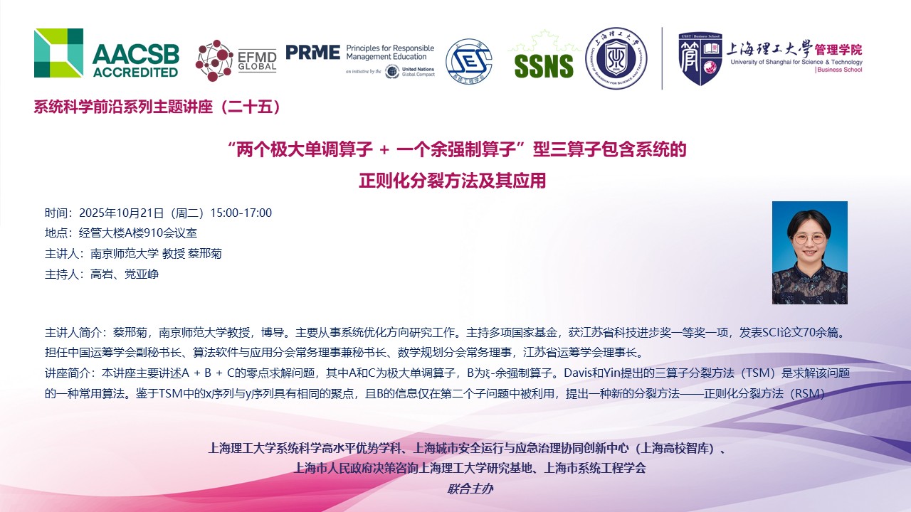 系统科学前沿系列主题讲座(二十五):“两个极大单调算子 +一个余强制算子”型三算子包含系统的正则化分裂方法及其应用