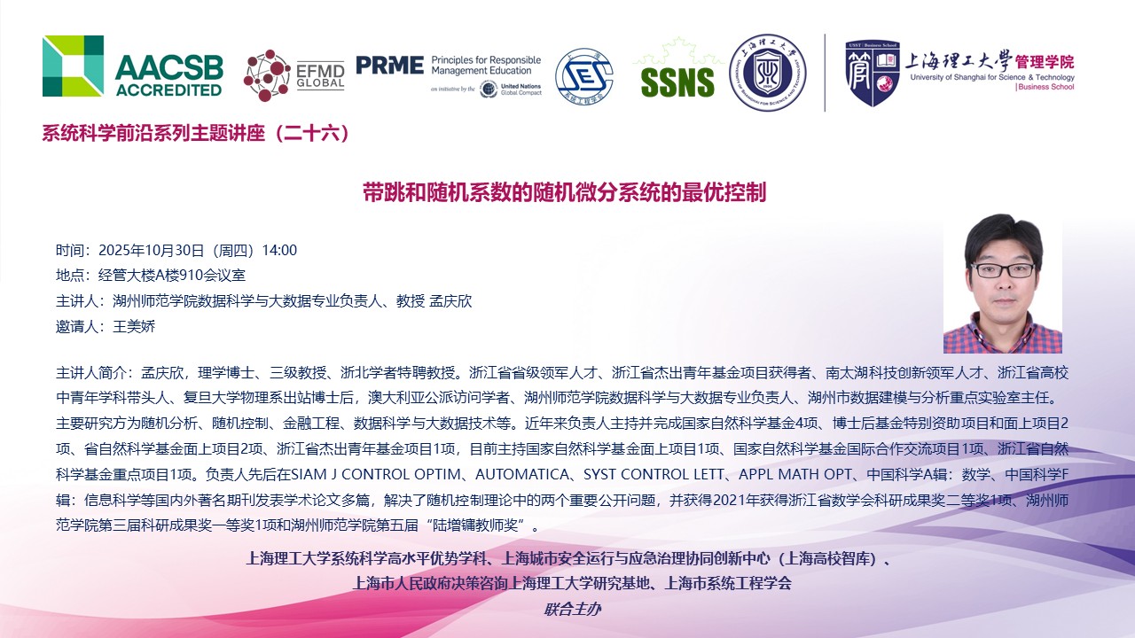 系统科学前沿系列主题讲座(二十六):带跳和随机系数的随机微分系统的最优控制