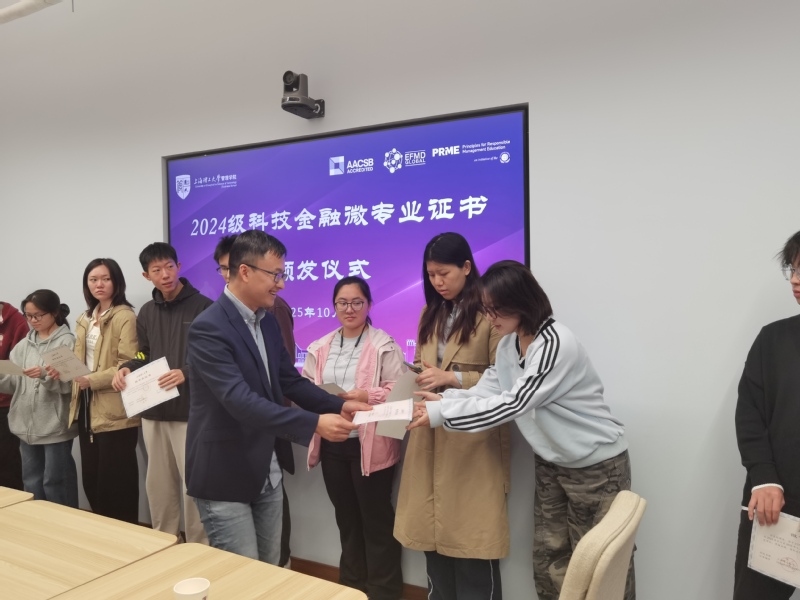 证书颁发仪式上,房志明为首届科技金融微专业毕业生颁发了毕业证书。随后,公布了本届获得奖学金学生名单