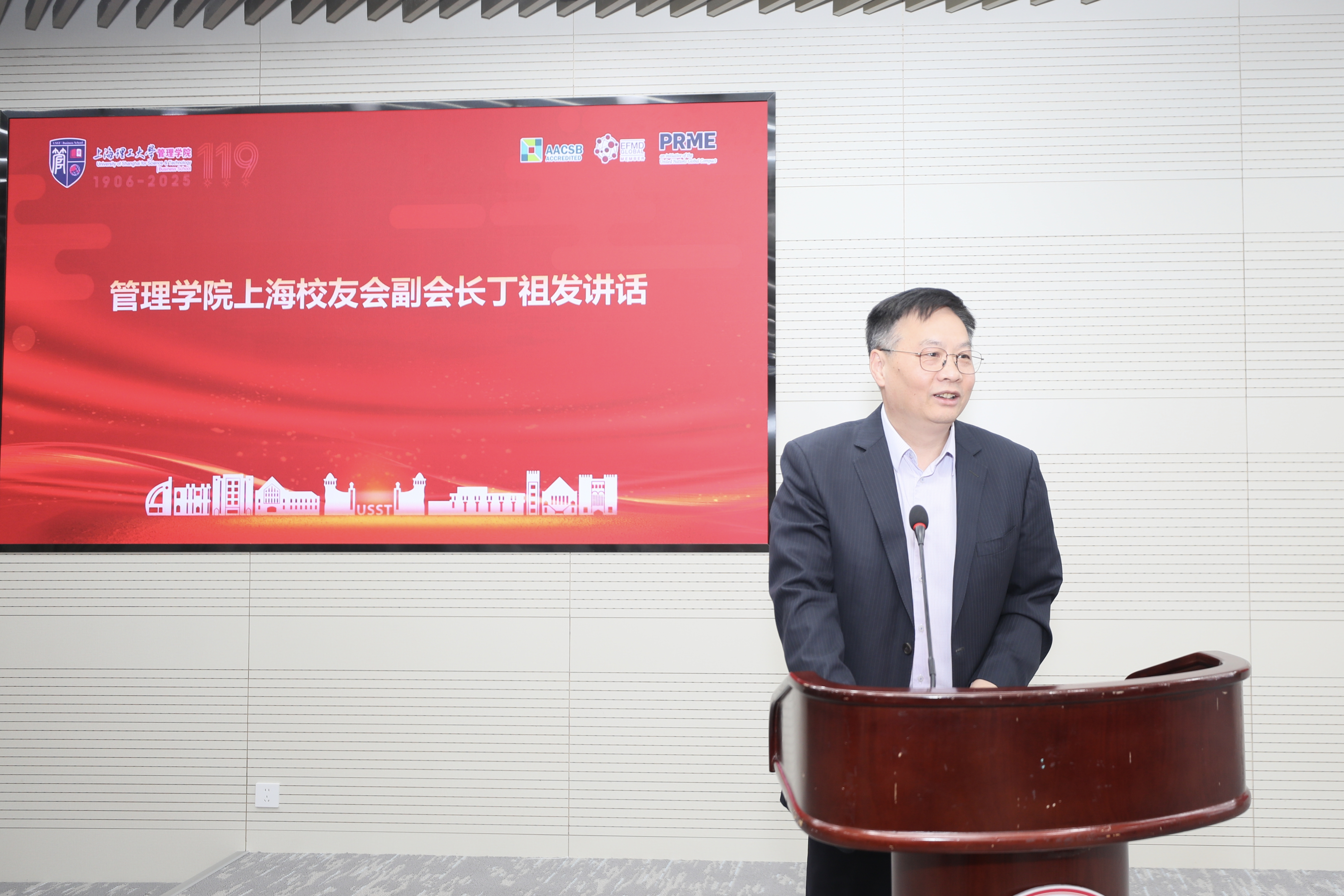 副会长丁祖发以“走访与链接”“共建与赋能”“参与与闪光”概括过去一年的工作亮点,并提出三点建议:一是凝聚校友力量,以百廿校庆为契机搭建互助合作桥梁,构建“母校-校友-社会”多方共赢的良性循环;二是赋能发展进程,通过校企协同、人才共育与智力共享,为学院发展注入持续动能;三是拓展工作格局,加强国内外校友资源联动,善用数字化工具延伸校友网络影响力,让“管院声音”传遍全球。