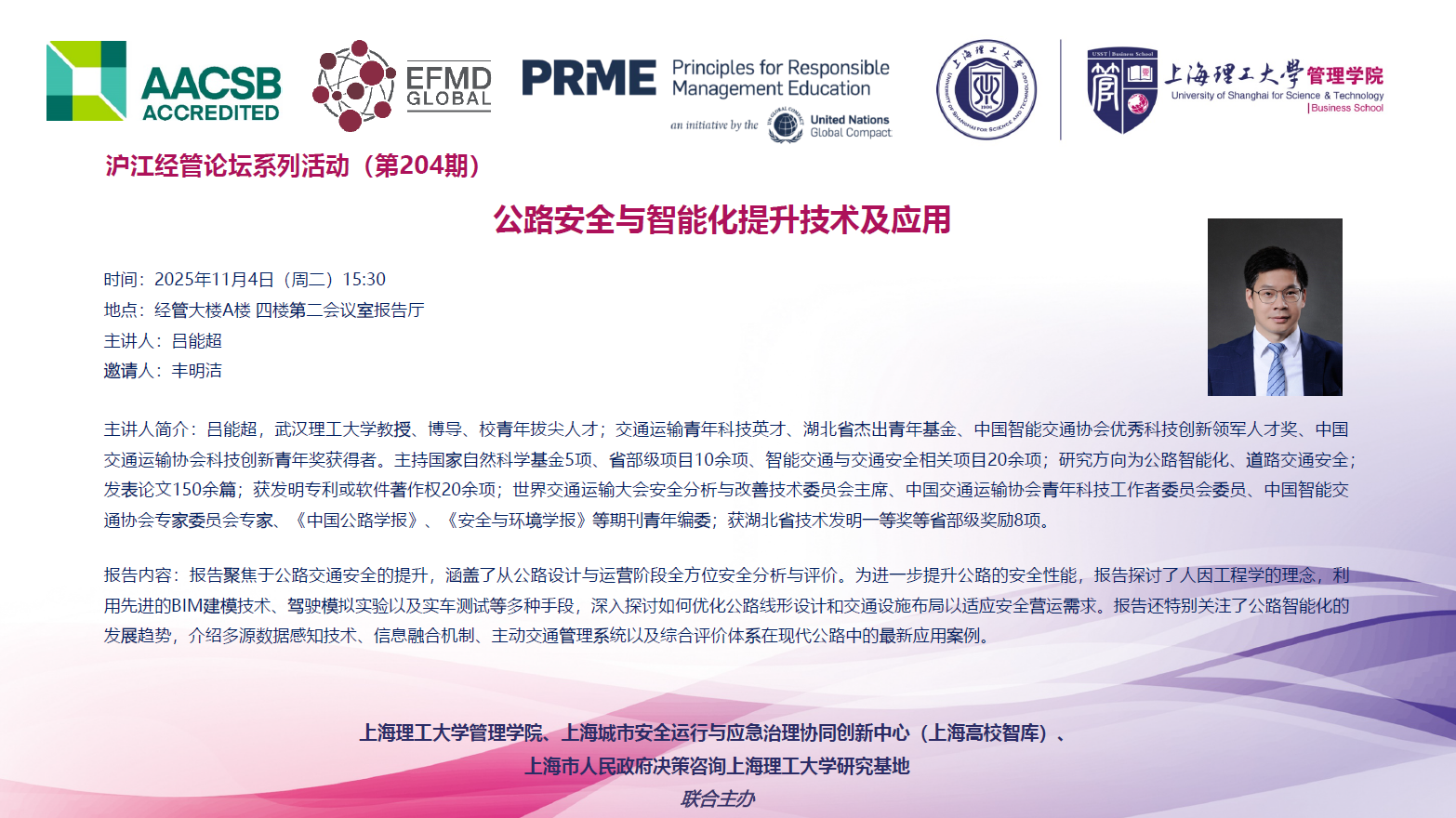 沪江经管论坛系列活动(第204期):公路安全与智能化提升技术及应用