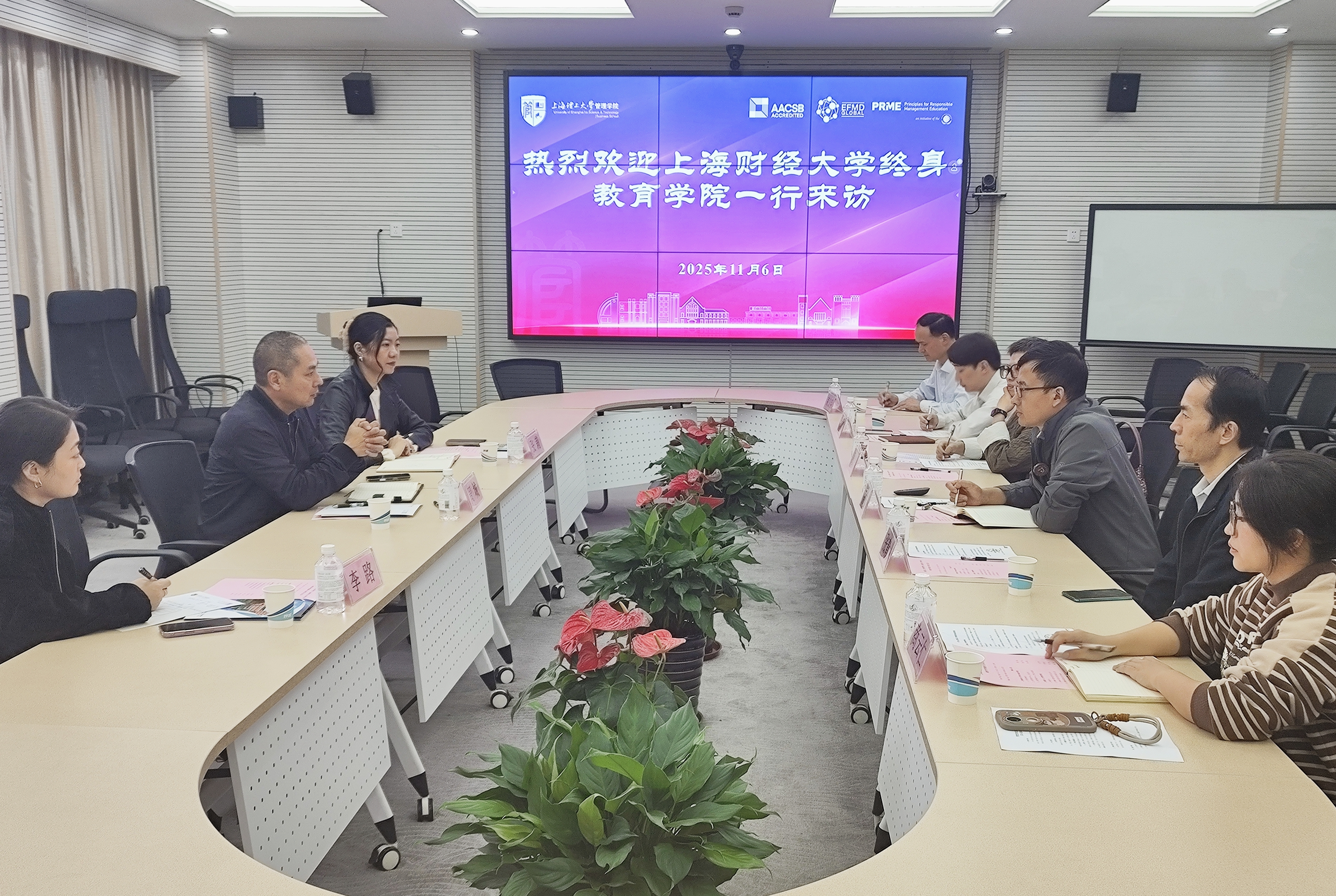 11月6日下午,上海财经大学终身教育学院首席战略官周城、高管教育中心二部主任张莉、业务拓展李路一行来访。上海理工大学管理学院副院长房志明,金融与国际经贸系系主任张青龙、副系主任周敏、青年教师林敢,本科教务办主任束义明和教学秘书商云仁参加会谈。会议由房志明主持。