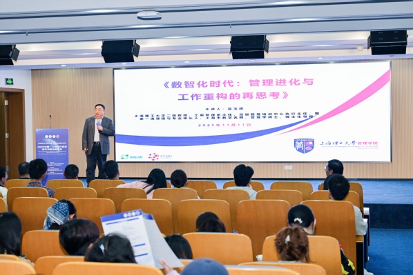 在专题报告中,葛玉辉教授以他一贯幽默风趣的教学风格,结合实际案例深入剖析了数智化时代给组织与管理带来的深刻变革。首先,他从现实背景引入,从管理理念、技术应用这两方面提出数智化时代对人的管理呈现出技术驱动与人性化融合的双重变革趋势。他指出,当前时代不仅是一场技术革命,更是一场认知、价值、战略和领导力的革命。其次,面对具有易变性、不确定性、复杂性、模糊性(VUCA) 特征的商业环境,他系统阐述了管理模式必须进行的五大进化:从静态规划转向动态跟踪的战略模式;从指挥控制转向去中心化的管控模式;更强调人机协同与敏捷团队孕育的组织模式;注重内部授权与开放沟通的协作模式;以及需不断迭代创新以应对市场变化的商业模式。最后,他强调,数智化时代的工作模式正被深度重构,组织需从“管控机器”进化为“赋能平台”,而个体则需从“被动适应”转向“主动进化”,并旗帜鲜明地提出“技术驱动变革,但人才定义未来”的核心主张。