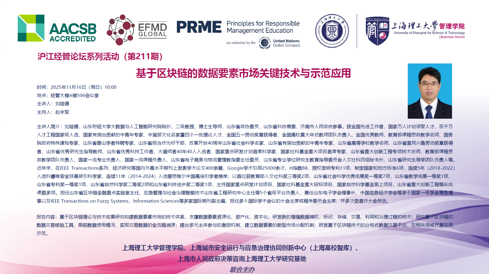 沪江经管论坛系列活动(第211期):基于区块链的数据要素市场关键技术与示范应用