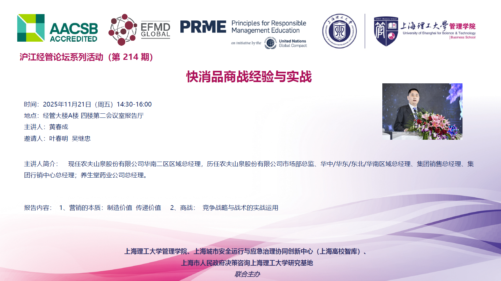沪江经管论坛系列活动(第214期):快消品商战经验与实战