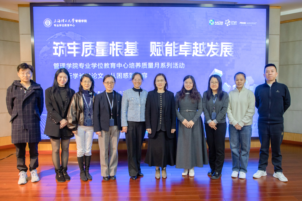 11月25日,上海理工大学管理学院专业学位教育中心举办“听学长讲论文,从困惑到从容”经验分享会。本次活动是中心“筑牢质量根基,赋能卓越发展——培养质量月系列活动”的重要组成部分,旨在通过邀请优秀毕业生分享论文写作与答辩经验,帮助在校学生解决论文撰写过程中遇到的难点与困惑,切实提升专业学位论文质量。中心综合办公室主任孟陈莉主持活动。