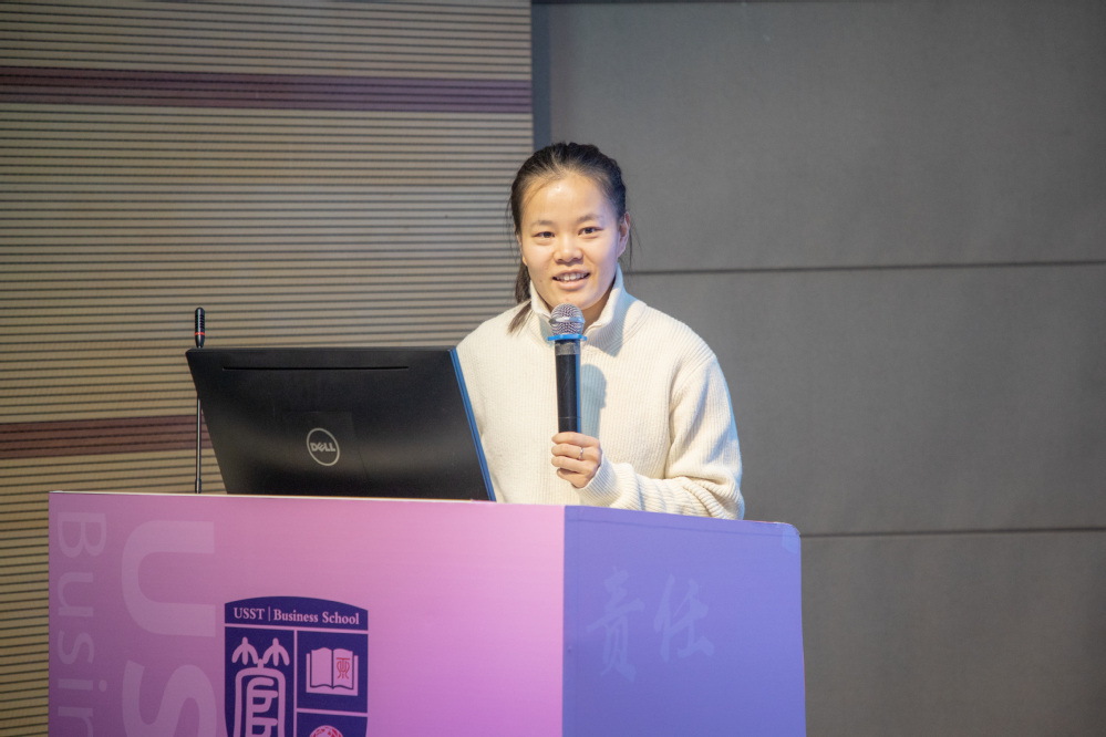 2025届MBA优秀毕业生、上海世淇教育科技有限公司总经理付攀结合自身论文写作经历,分享了“聚焦企业实际需求”的写作策略。她认为,专业学位硕士论文应着力解决企业运营中的现实问题,建议同学们主动深入企业,挖掘痛点,运用数据分析与模型构建,实现跨学科整合,从而增强论文的学术价值与实践价值。