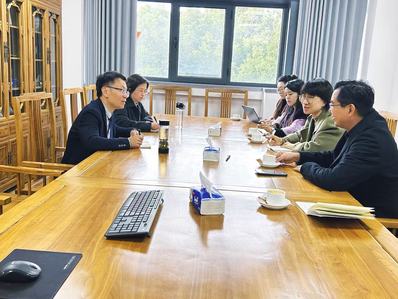 11月27日,中国—上海合作组织地方经贸合作示范区管理委员会代表团一行访问我校。代表团成员包括:胶州市科技创新发展服务中心主任侯朝旭、上合示范区管委会产业二部副部长甘路、青岛大沽河省级旅游度假区主任助理徐刚、青岛幼儿师范高等专科学校外国语学院副院长宋倩倩、胧爱集团总裁兼联合创始人张庭赫、青岛胜利集团董事长兼总经理贾子秋等。我校教务处副处长、健康科学与工程学院博导李素姣,管理学院党委副书记严瑾、副院长刘魏巍,环境与建筑学院以及国际化办公室等相关人员等参与交流。会谈由刘魏巍主持。