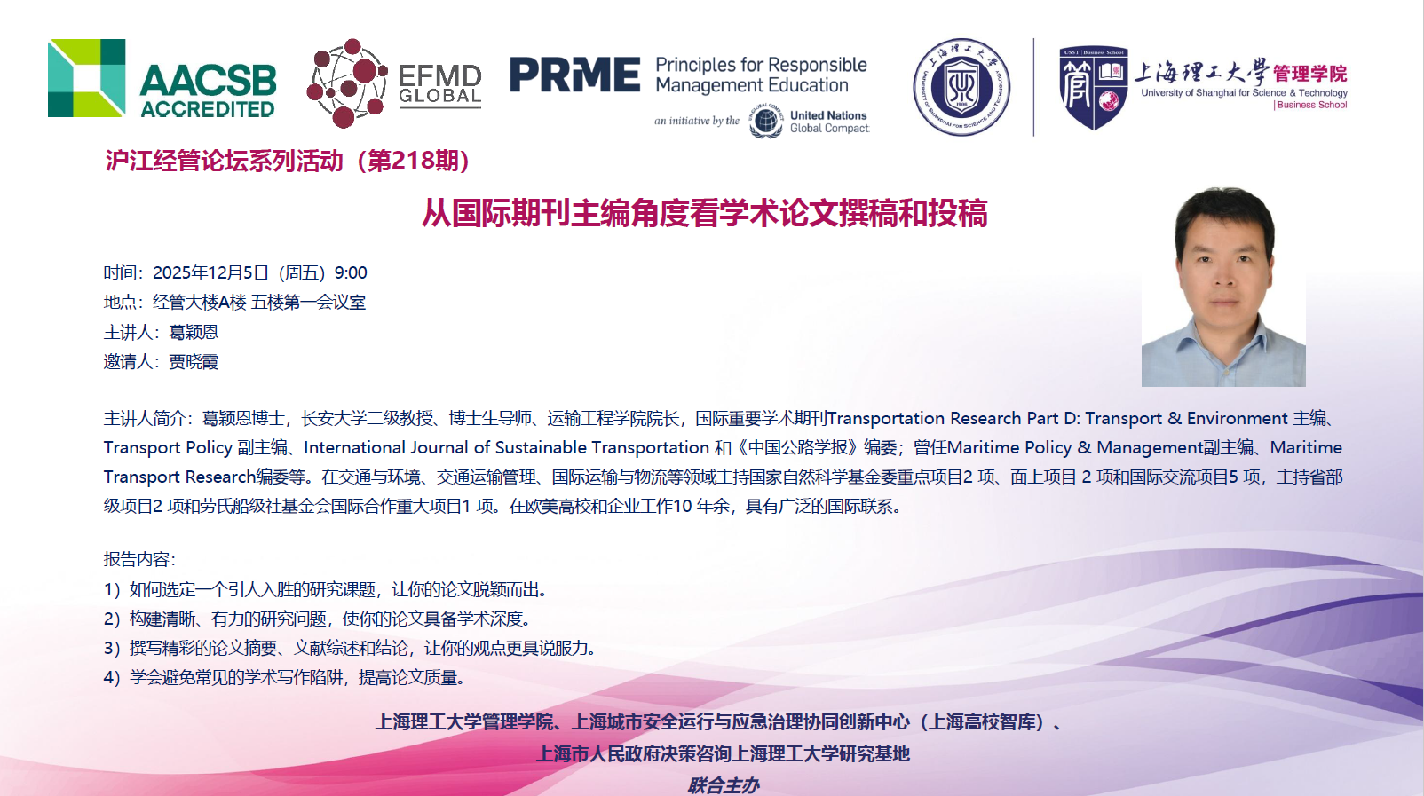沪江经管论坛系列活动(第218期):从国际期刊主编角度看学术论文撰稿和投稿