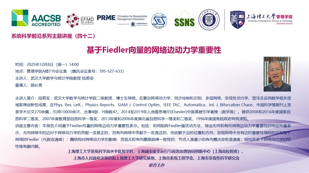 系统科学前沿系列主题讲座(四十二):基于Fiedler向量的网络边动力学重要性