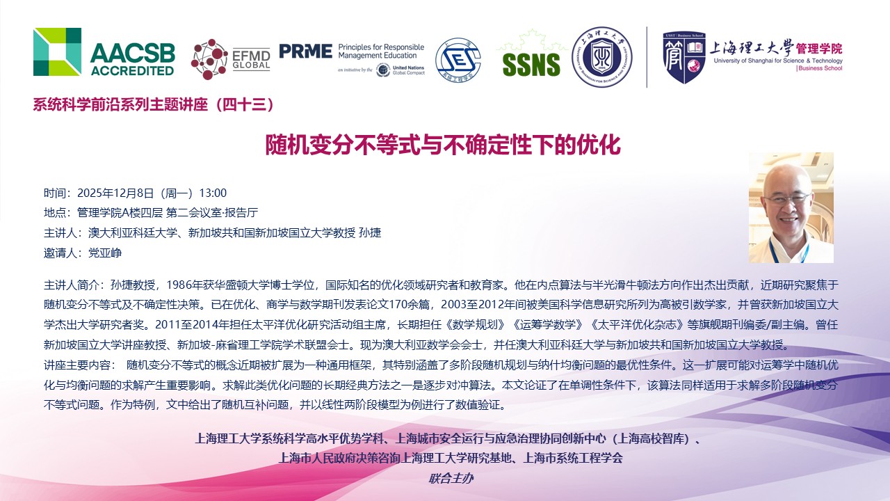 系统科学前沿系列主题讲座(四十三):随机变分不等式与不确定性下的优化