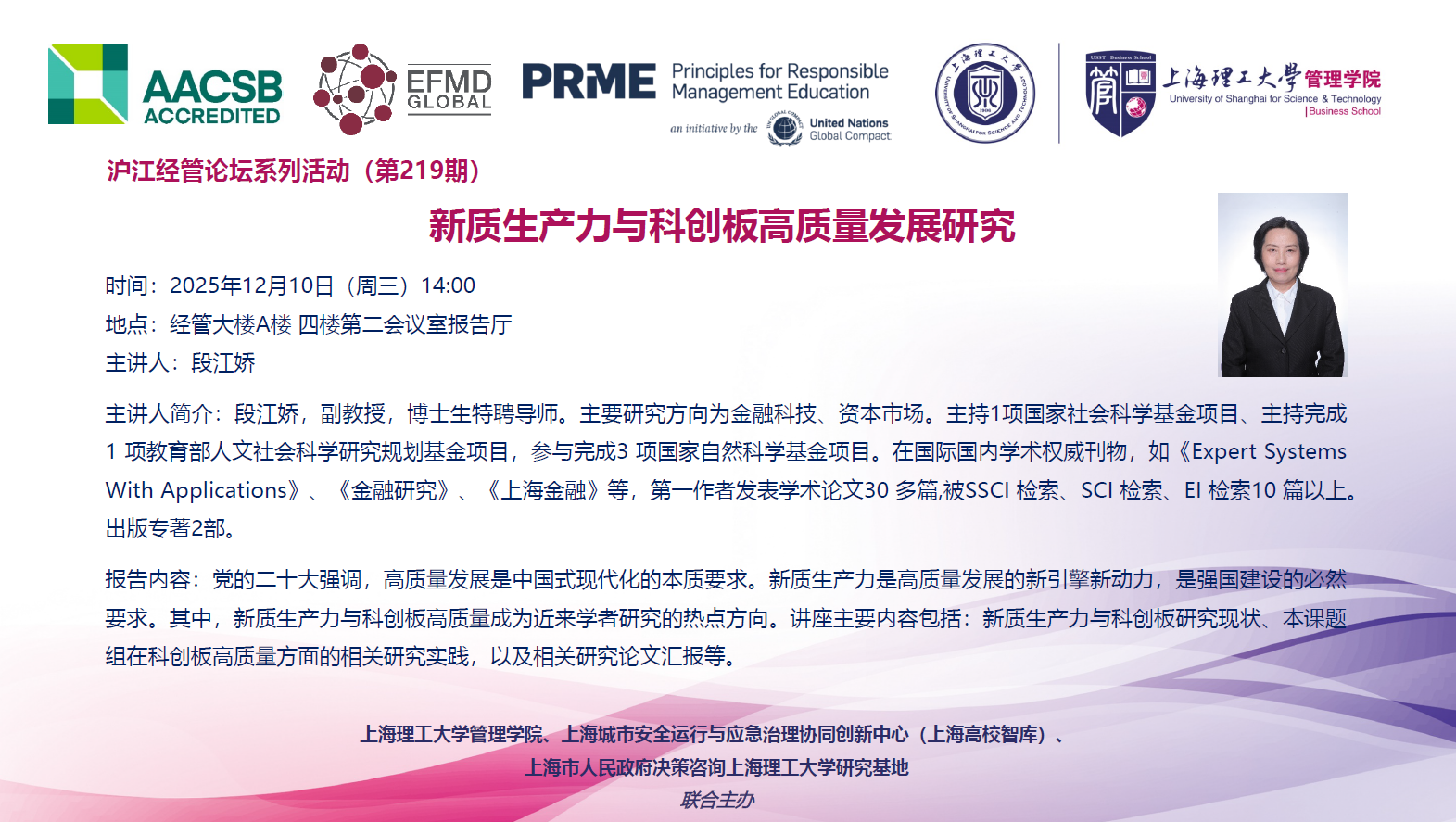 沪江经管论坛系列活动(第219期):新质生产力与科创板高质量发展研究
