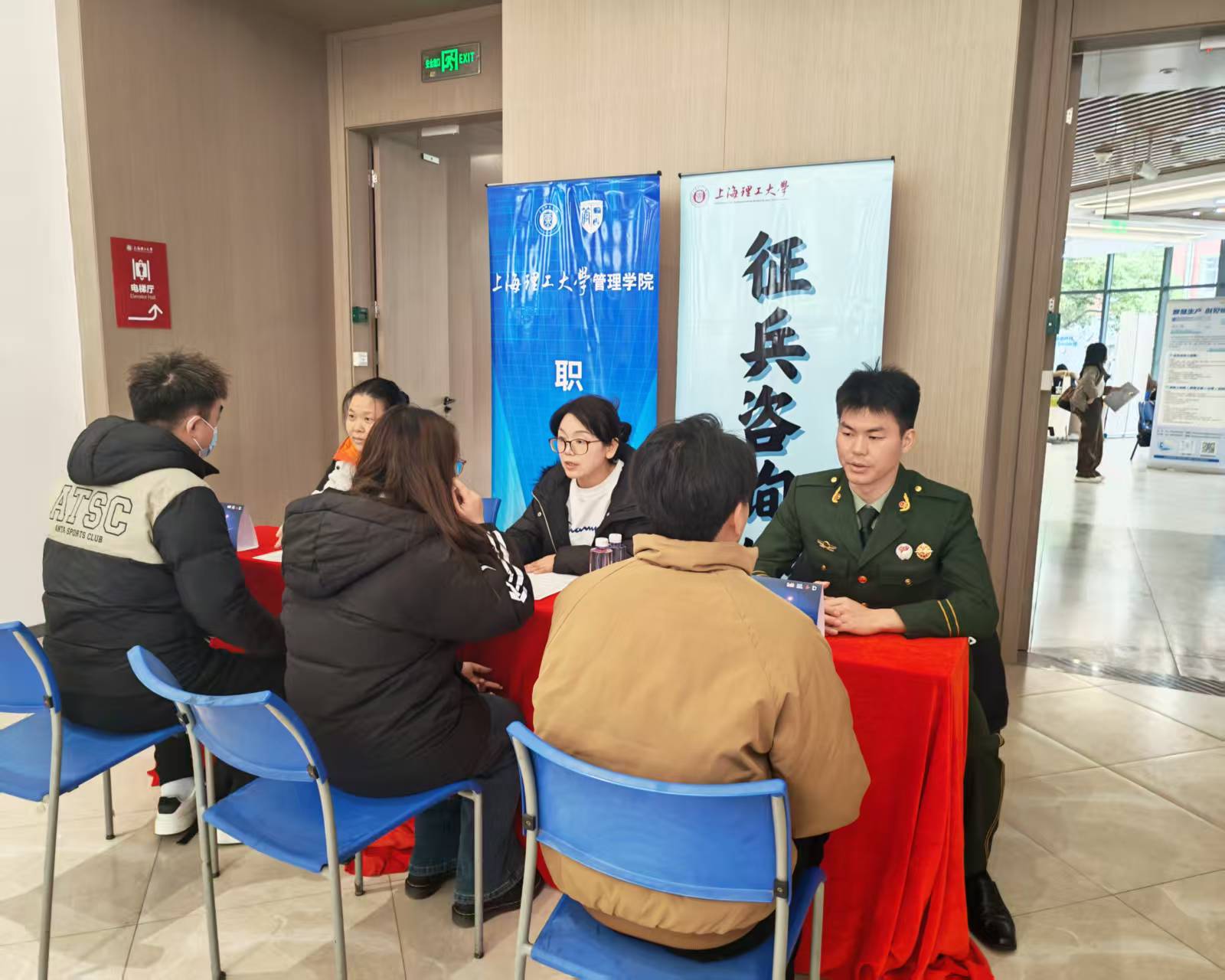 现场同步设立“求职加油站”与“征兵咨询点”。学校和学院职业导师团为同学们提供简历修改、面试辅导、政策答疑等“一对一”服务,累计修改简历百余份;征兵咨询点前,20余名有志学子详细了解军地联合培养、服役优待等政策,为职业生涯增添多元选择。