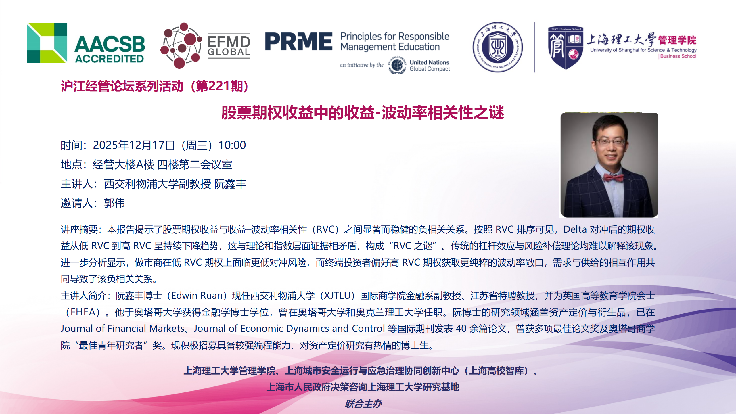 沪江经管论坛系列活动(第221期):股票期权收益中的收益-波动率相关性之谜