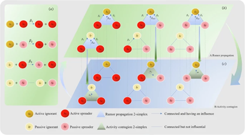 研究聚焦二单纯形结构的群体互动特征,明确高阶互动与活跃性感染机制对谣言传播的双重调控作用—既可能加速扩散,也可通过调控个体行为活跃性实现精准抑制。该应用成果将基础理论中的网络结构-动态行为关联规律,转化为复杂社会系统舆情治理的实操方案,为谣言预测与干预提供了关键技术支撑。
