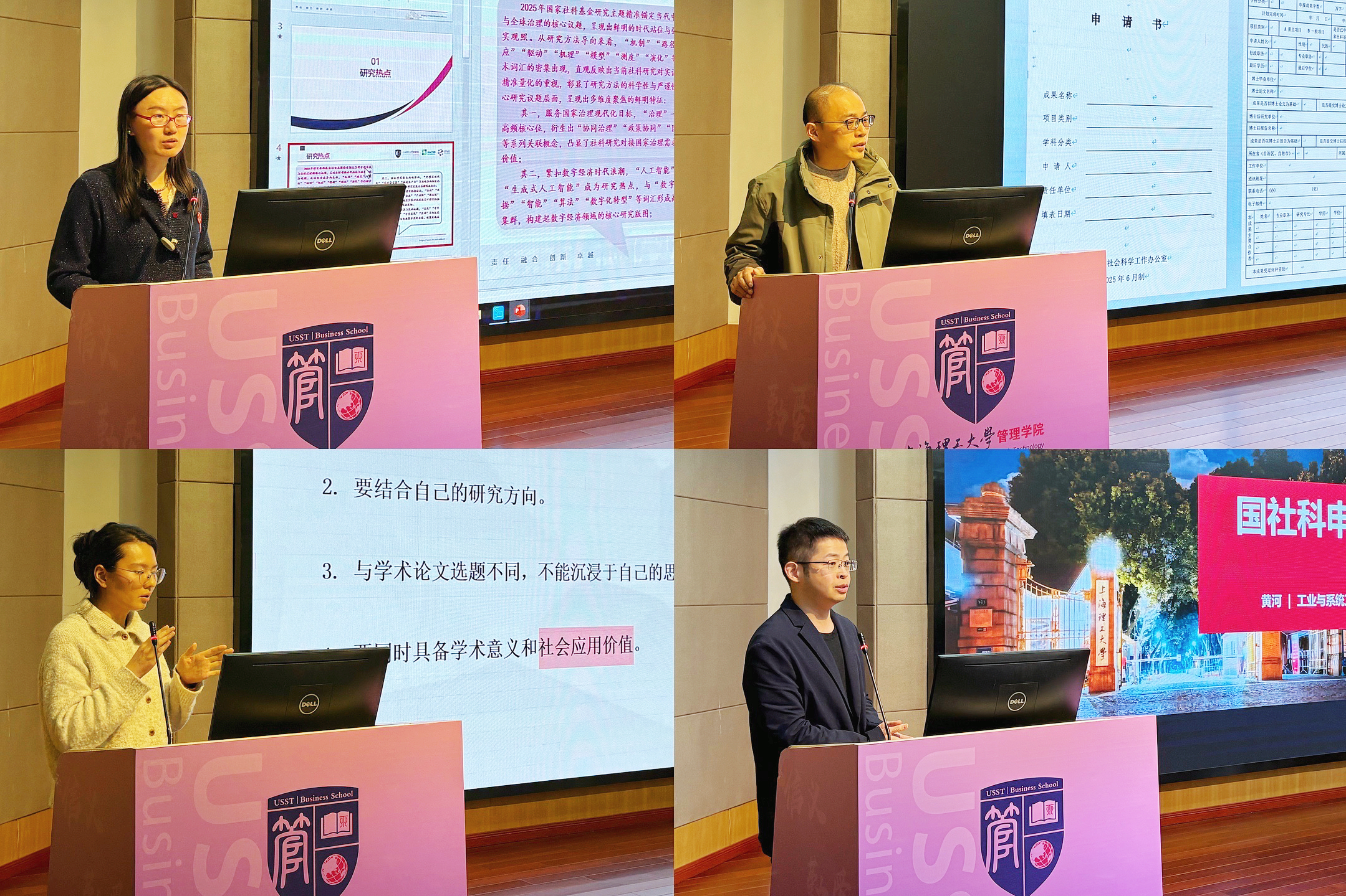 为切实提升管理学院教师国家社科基金项目的申报质量与成功率,管理学院青年教师成长发展促进会于12月23日举办了专题经验分享会。会议邀请了八位近年来成功立项的教师代表,结合自身实战经历,围绕选题、论证、写作等关键环节进行了深入细致的分享。管理学院副院长刘魏巍、青促会会长刘勤明、青促会指导教师李正明,以及学院青年教师代表参加会议。本次会议由刘勤明主持。