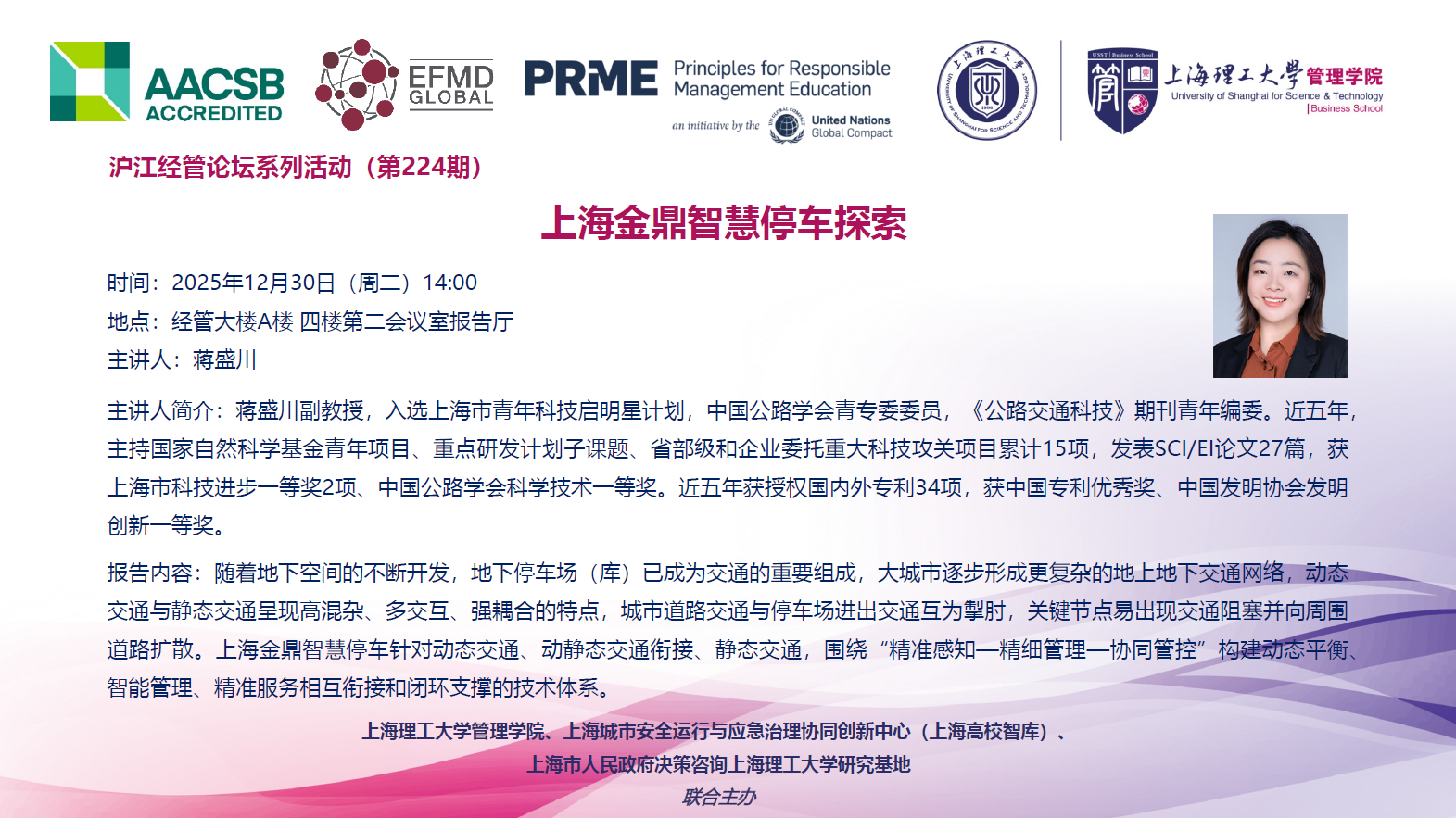 沪江经管论坛系列活动(第224期):上海金鼎智慧停车探索