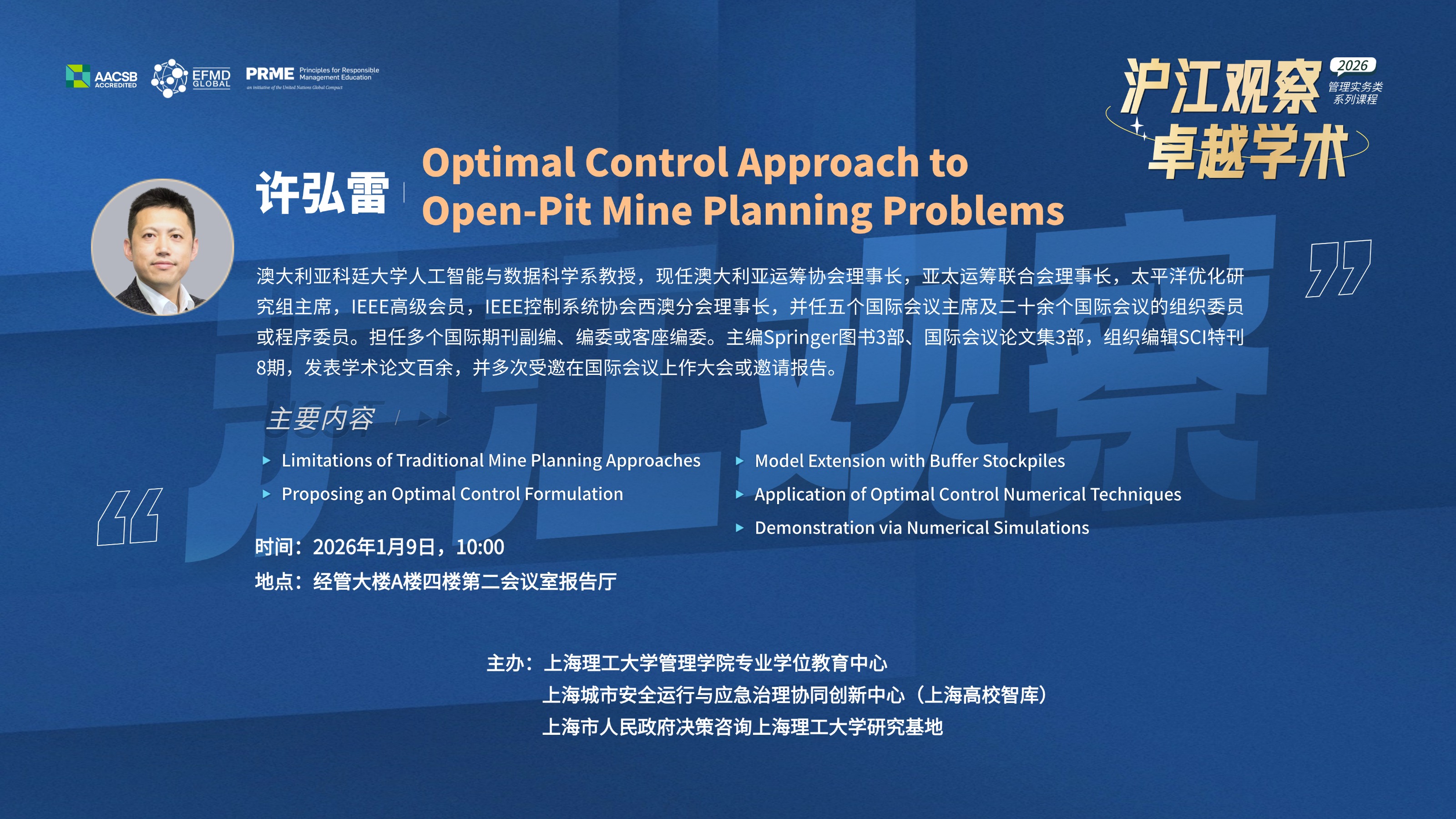 沪江观察.卓越学术:Optimal Control Approach to Open-Pit Mine Planning Problems