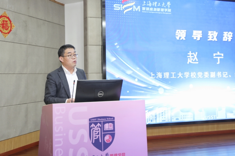 赵宁在致辞中对出席会议的领导和嘉宾表示衷心感谢。他表示,过去一年,智慧应急管理学院在上海市应急管理局及各合作单位的大力支持与全体研究员的共同努力下,在科研平台建设、创新能力提升、人才培养及社会服务等方面取得了一系列成果。展望未来,希望学院能以“上海市应急管理局重点实验室”获批建设为契机,依托学校多学科交叉优势,紧密对接城市安全发展的现实需求,进一步深化与市应急管理局及各合作单位的协同联动,持续在技术创新、成果转化和人才培养上发力,为学校“双一流”建设,为上海乃至国家应急管理现代化进程贡献更多“上理智慧”。