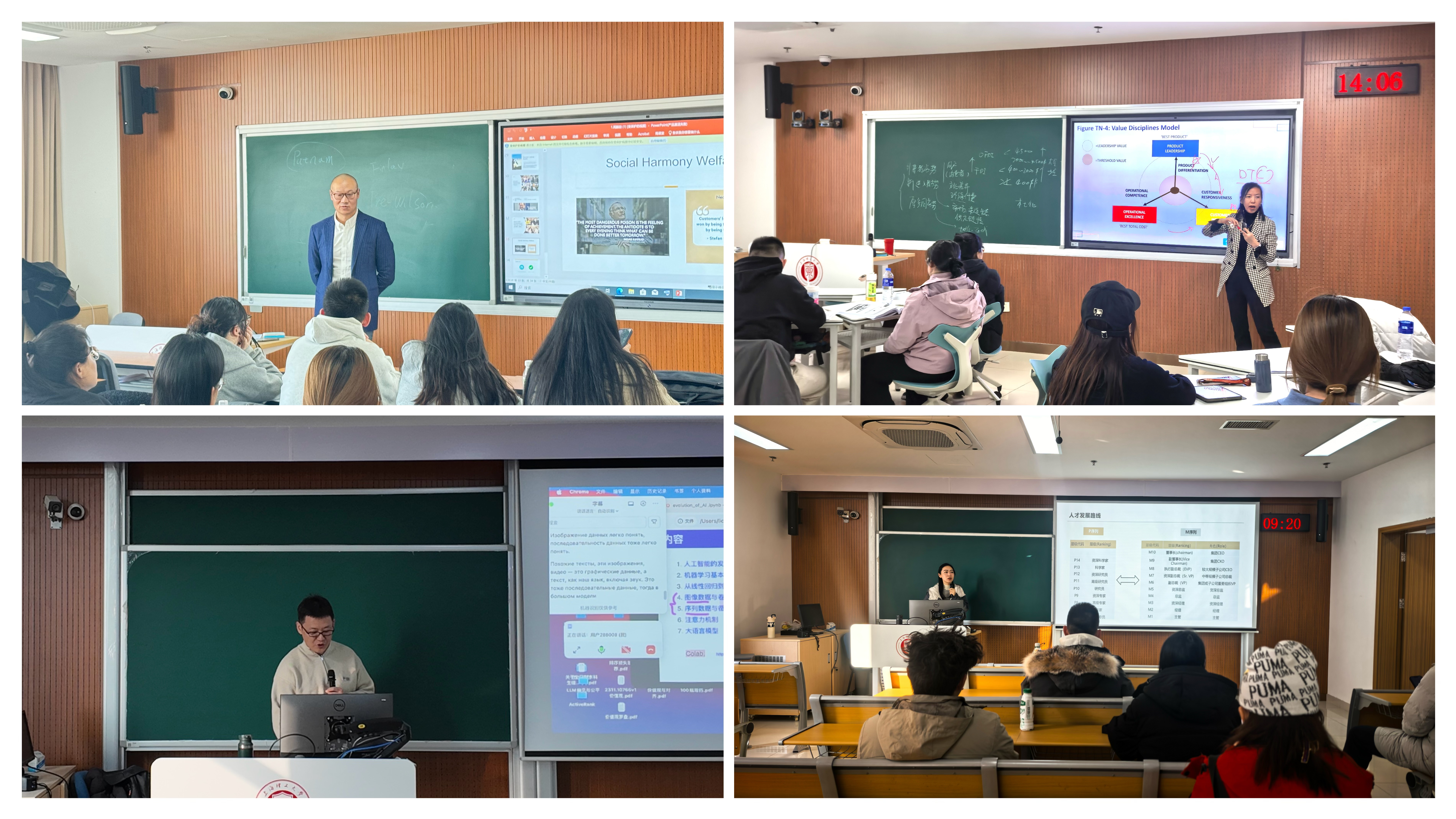 联合国和平大学欧洲和平与发展中心国际关系学教授周麟劼从理论与案例两个维度,系统探讨了不同文化背景下的创业模式、价值观差异及其对企业家精神的影响。上海理工大学管理学院教师沈莉以“暂停实验室”为例,解析数字化心理干预赛道的创业机会识别与心智训练方法。上海理工大学管理学院教师胡钟慧带来华为“九宫格”盘点法与阿里领导力“四部曲”,帮助学员了解搭建本土化人才梯队。在人工智能模块,上海理工大学管理学院副教授刘臣不仅剖析了AI技术内核,更在现场演示了人工智能在生活工作中的实践应用,让学员们亲身体验人工智能如何从概念转化为生产力。
