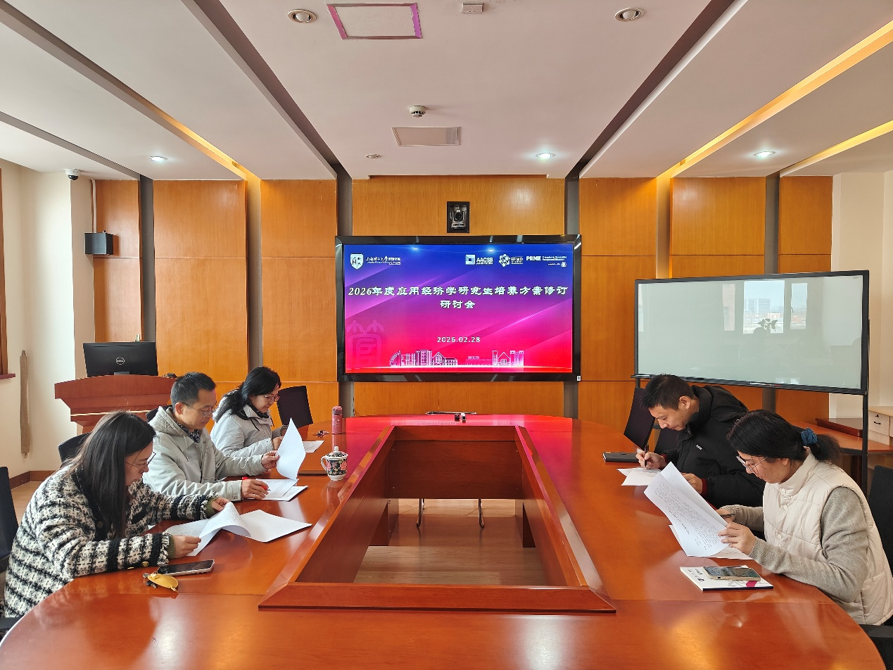 2月28日,管理学院召开2026年度应用经济学研究生培养方案修订研讨会。应用经济学科带头人田发教授,各方向代表教师刘芹副教授、吉黎副教授、廖昕副教授和卞泽阳副教授参加会议。会议由田发教授主持。