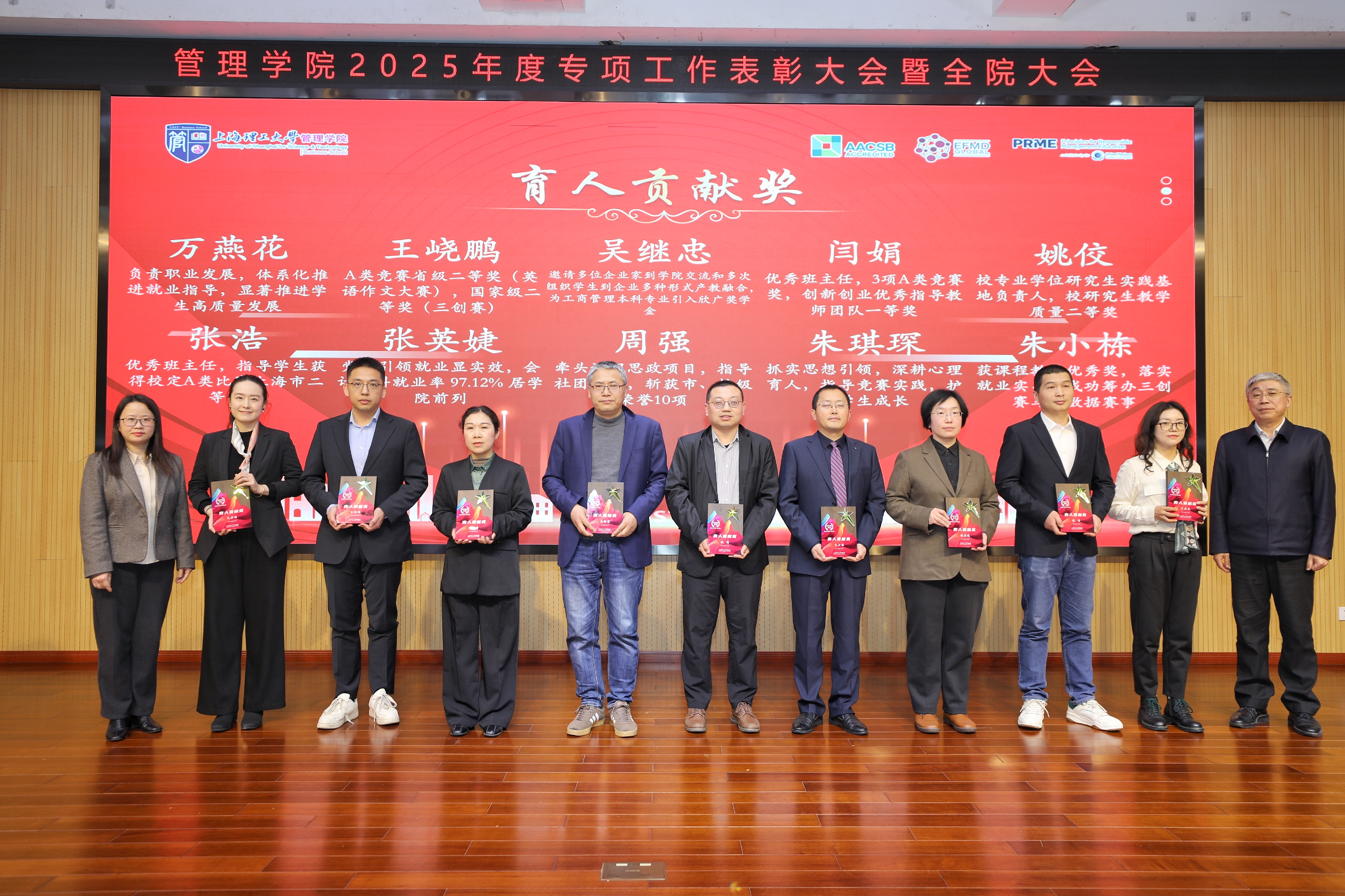 为表彰过去一年中在学院教学、科研、育人、文化、服务等专项工作中表现优秀的教师,号召全院教师向先进学习,促进学院发展再上新台阶,颁发了“教学贡献奖”20项、“科研贡献奖”30项、“育人贡献奖”20项、“服务贡献奖”5项、“文化贡献奖”5项。颁奖仪式由系统科学系青年教师孙颖主持。